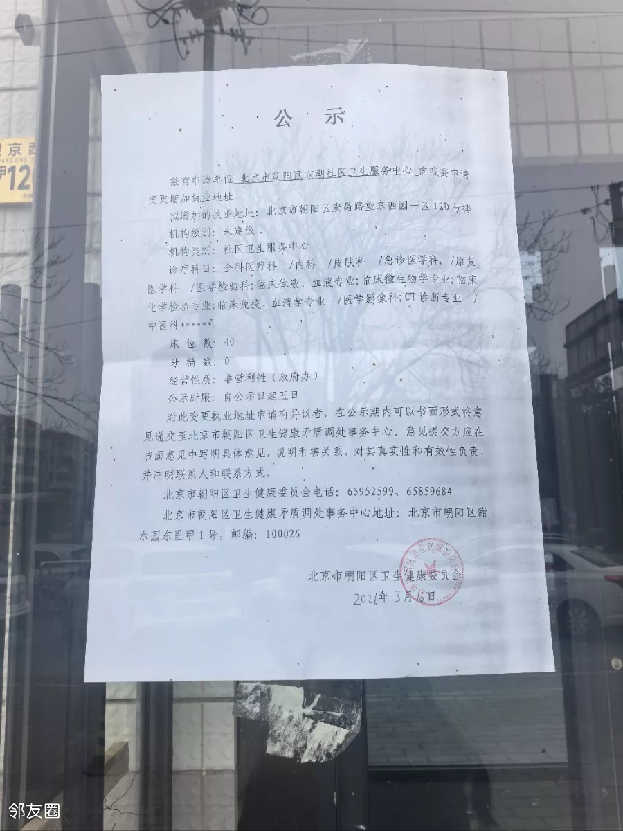 东湖卫生服务中心申请增加望京西园一区地址公告