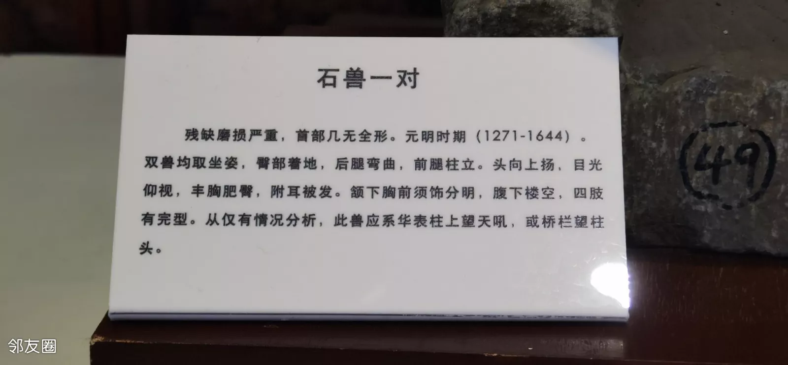 出土怀柔地界的石碑文物展,这一对石兽