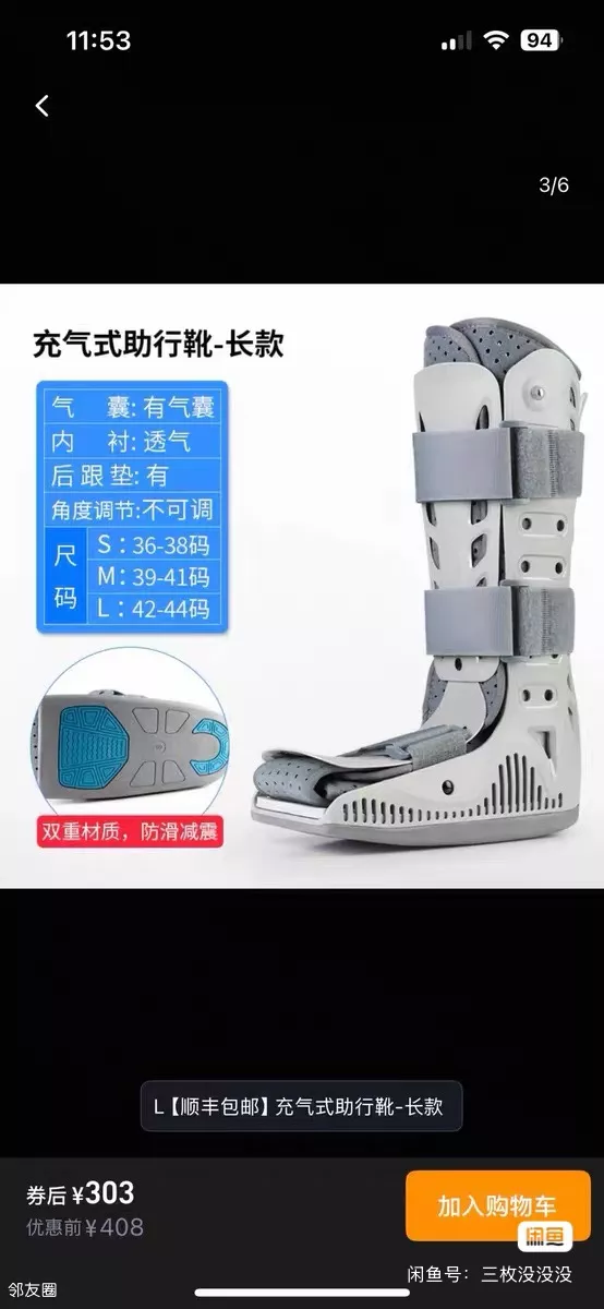 骨折康复护具三件套,自用,自己的骨折已好,完全闲置,属于给钱就卖,也单独卖。助行车因为大,估计运费比较贵最好上门自提