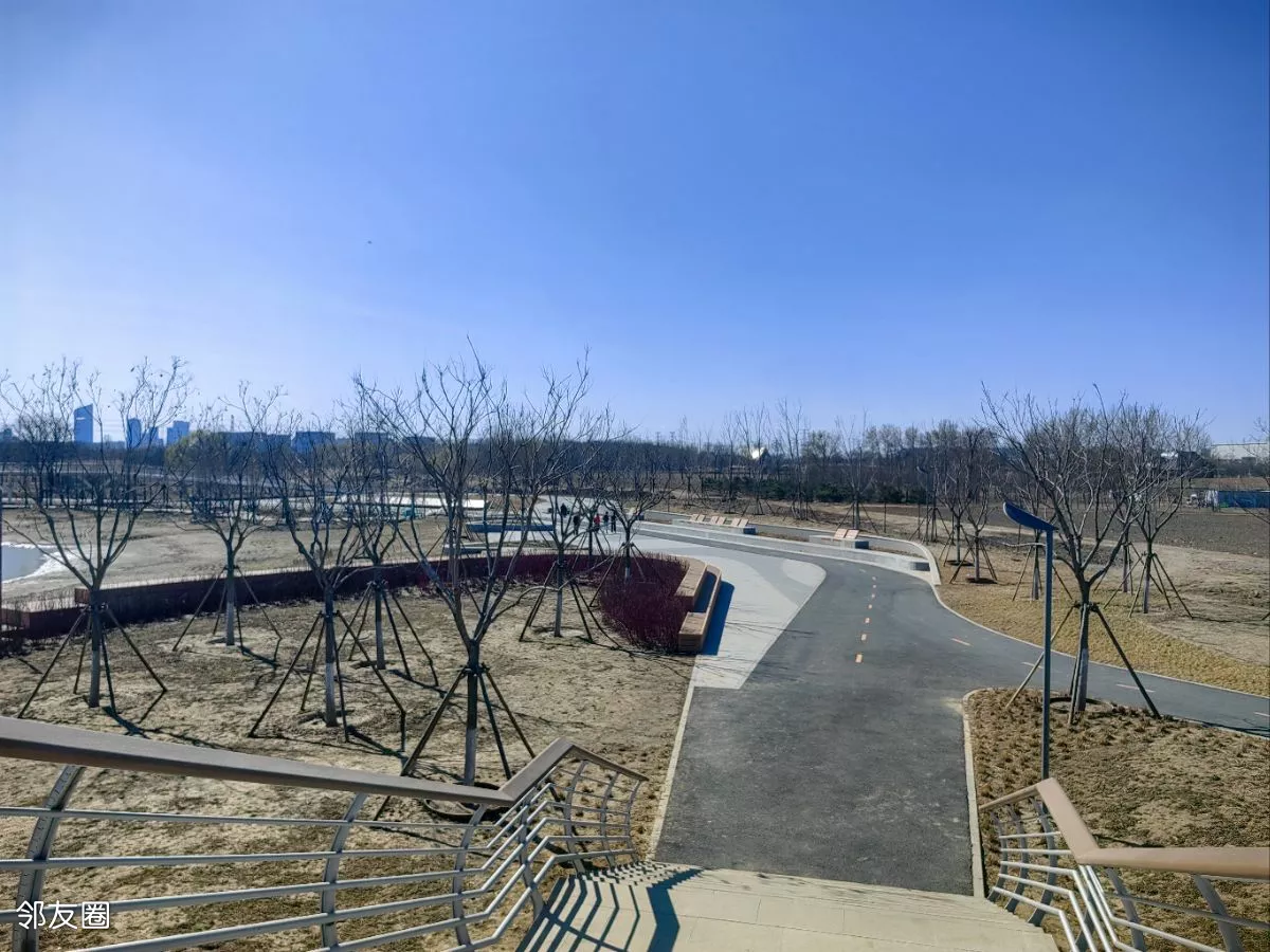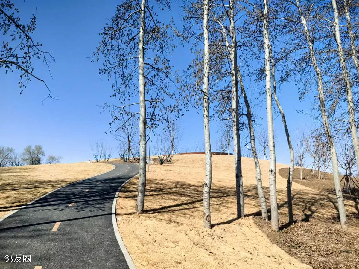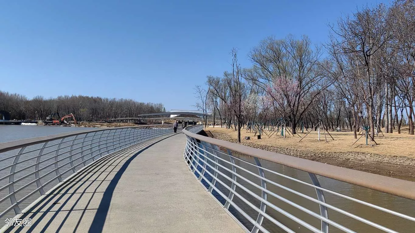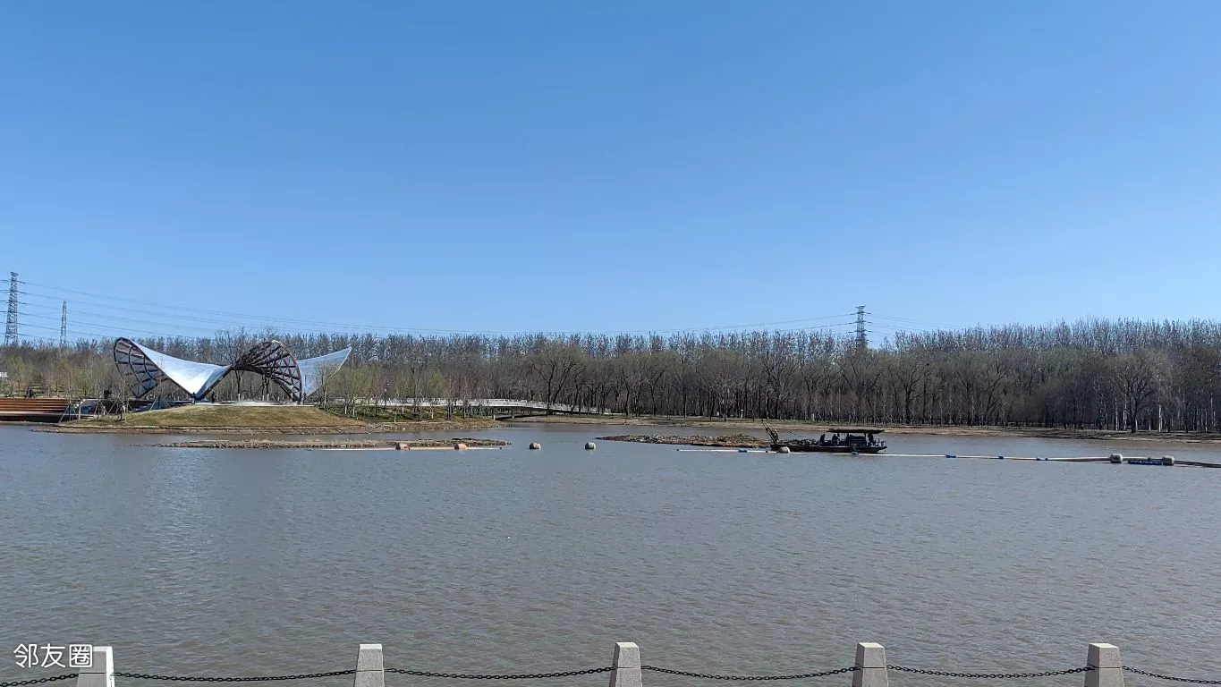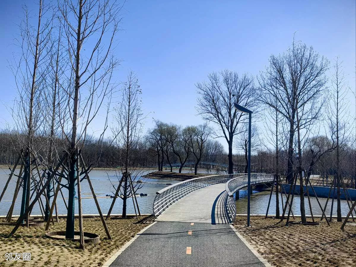 公园很大,且还在继续完善中。查了一下:公园占地127.9公顷,包含5公里环湖步道、湖心岛及白杨林景观带,金盏花岛造型形似五瓣花朵。兼具蓄滞洪区(可抵御50年一遇洪水)与城市绿肺功能。