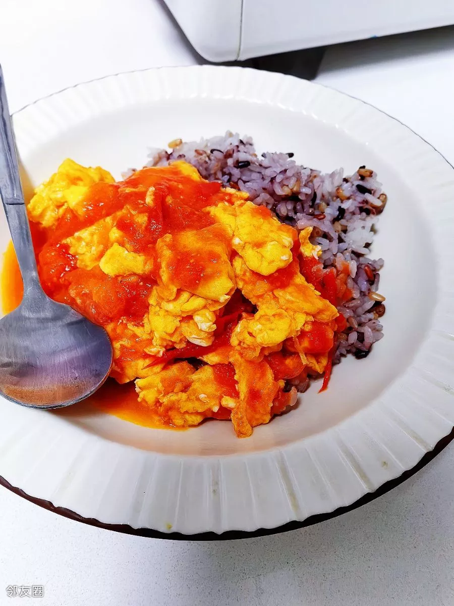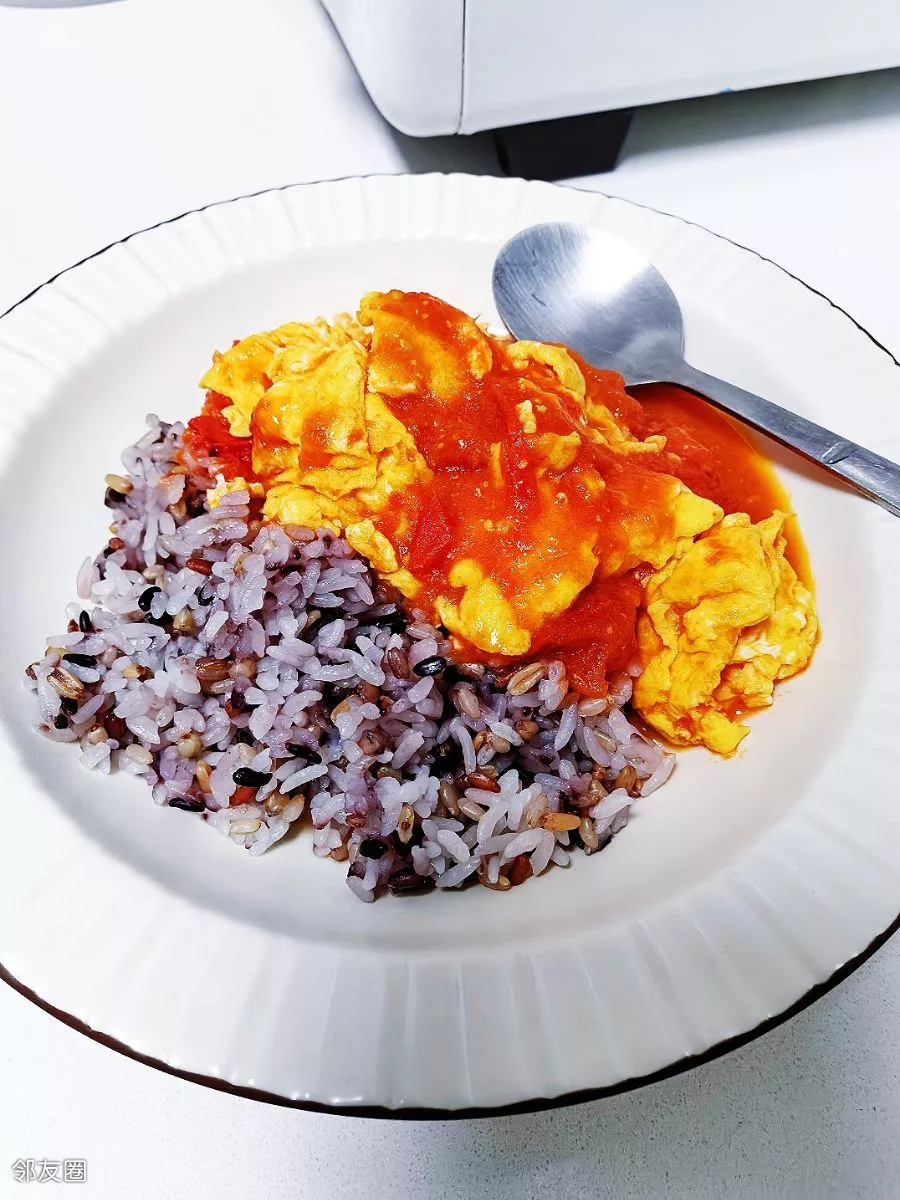 糙米饭配西红柿炒鸡蛋