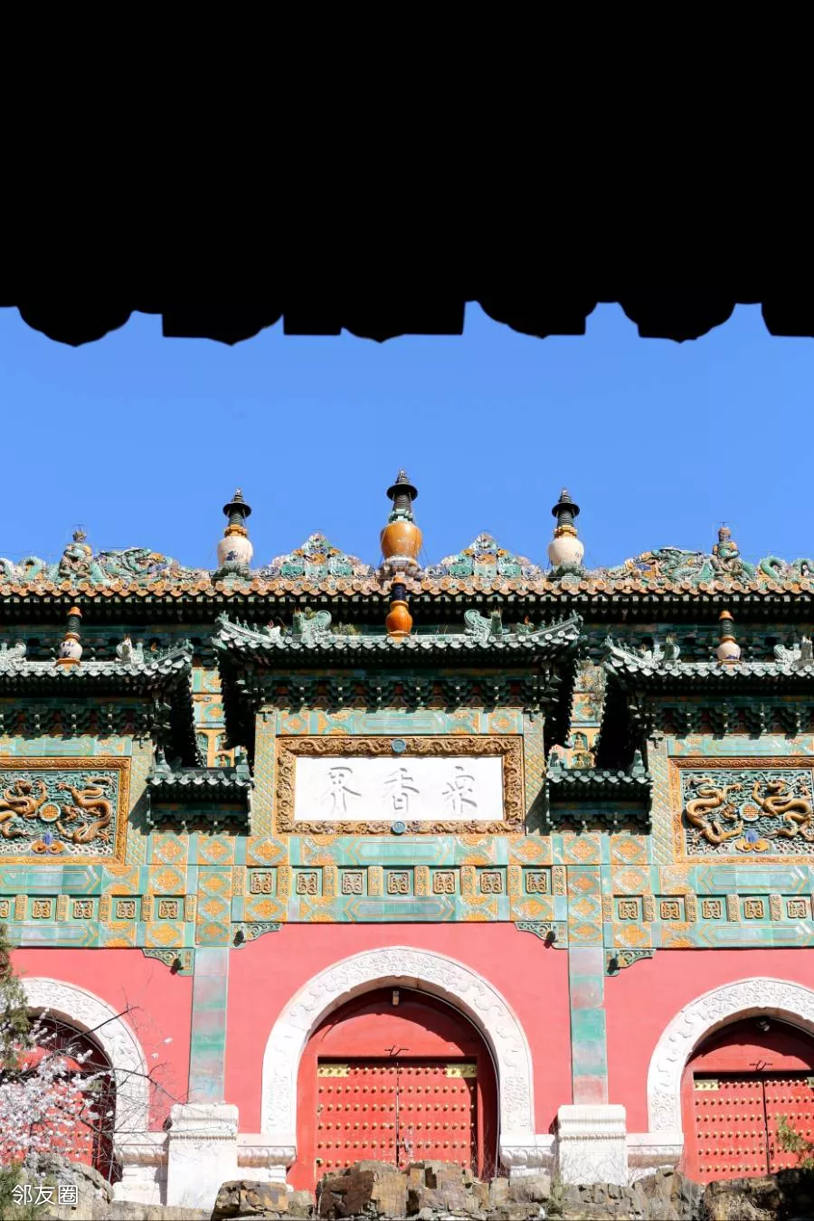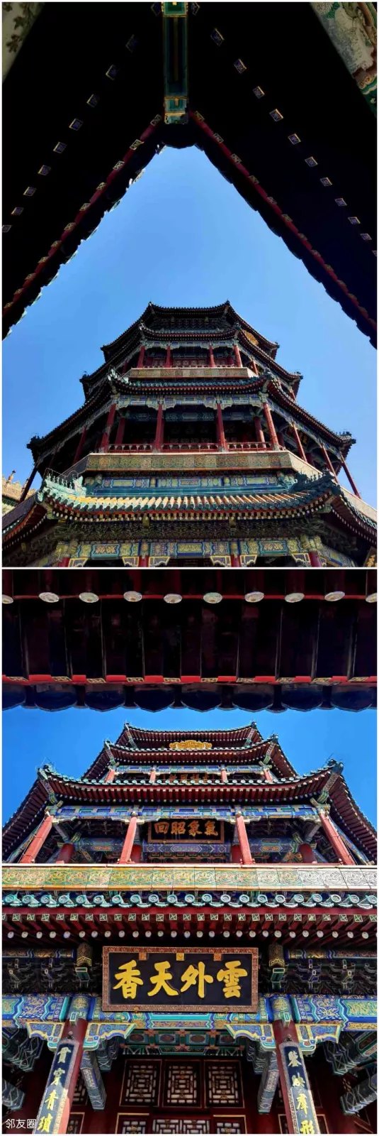 万寿之麓,昆明之滨。浮图拔地,标云汉之孤标;飞阁连甍,映朝霞之绮色。尔其丽日中天,融风被野,晴光乍破于层霄,淑气初匀于千嶂。盘磴道以凌虚,朱甍耀彩;抚雕栏而骋目,碧落无尘。