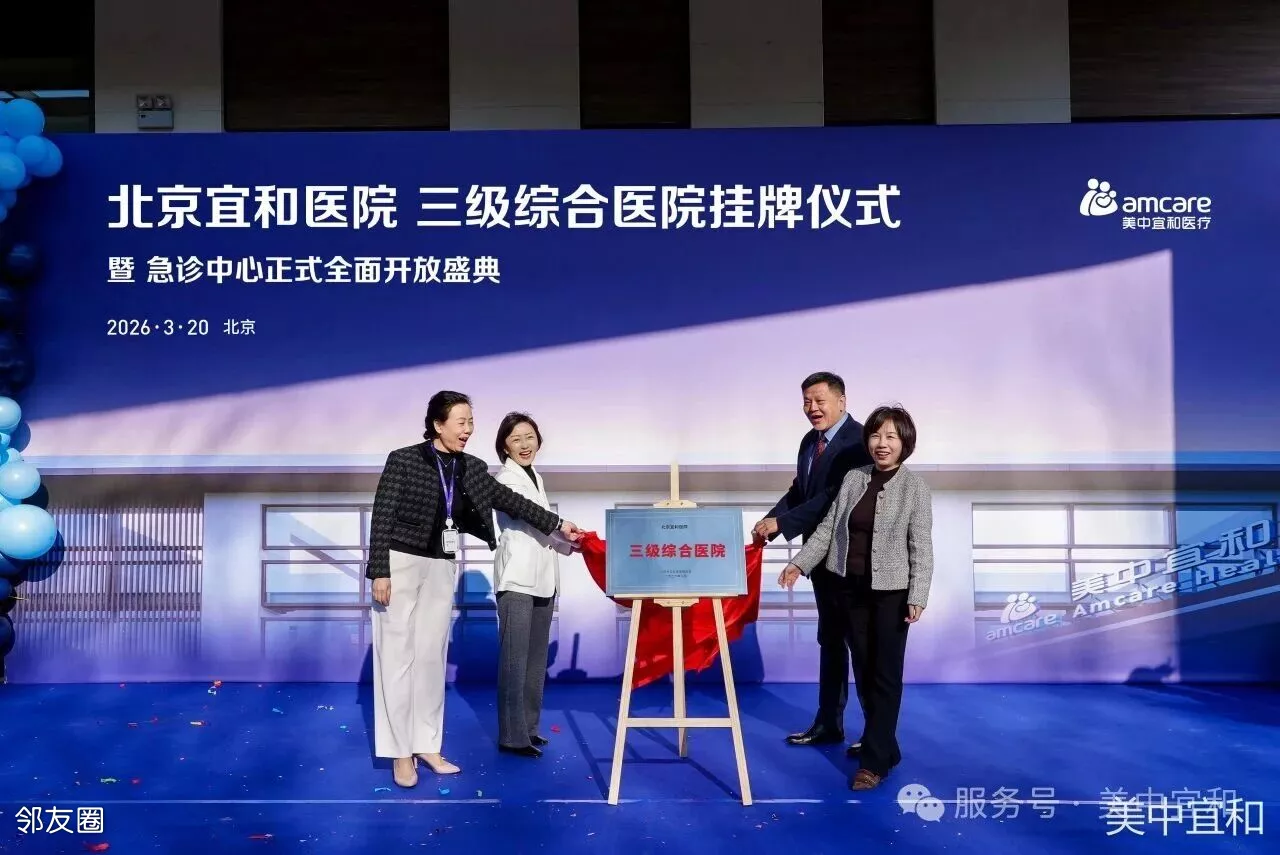 2026年3月20日,美中宜和三级综合医院(北京宜和医院)挂牌暨急诊中心正式全面开放典礼仪式圆满落幕,成为北京宜和医院开诊一年后重要的里程碑事件,也是美中宜和医疗发展历程中至关重要的一环。至此,美中宜和医疗不仅构建起涵盖多学科领域的综合医疗服务能力,更实现了综合医院专业实力与风险管控能力的双重提升,成为美中宜和完善医疗闭环能力的重要标志。而这背后,是美中宜和发展二十年的实力积淀与责任担当。