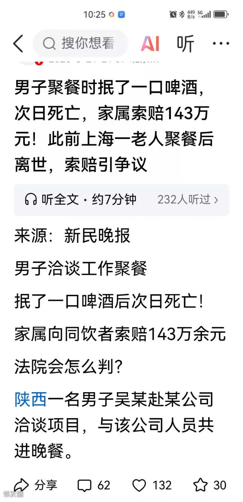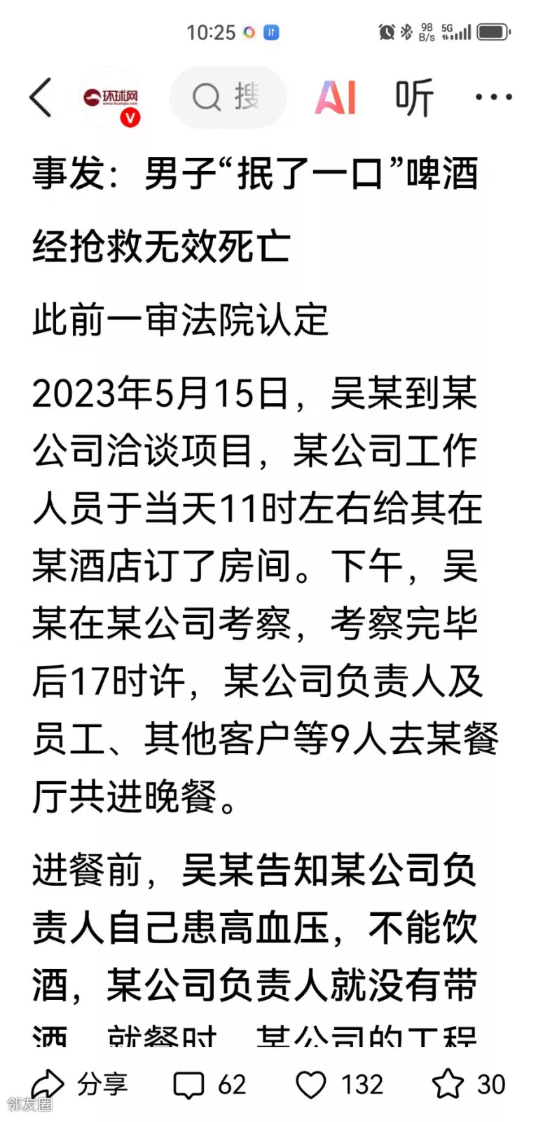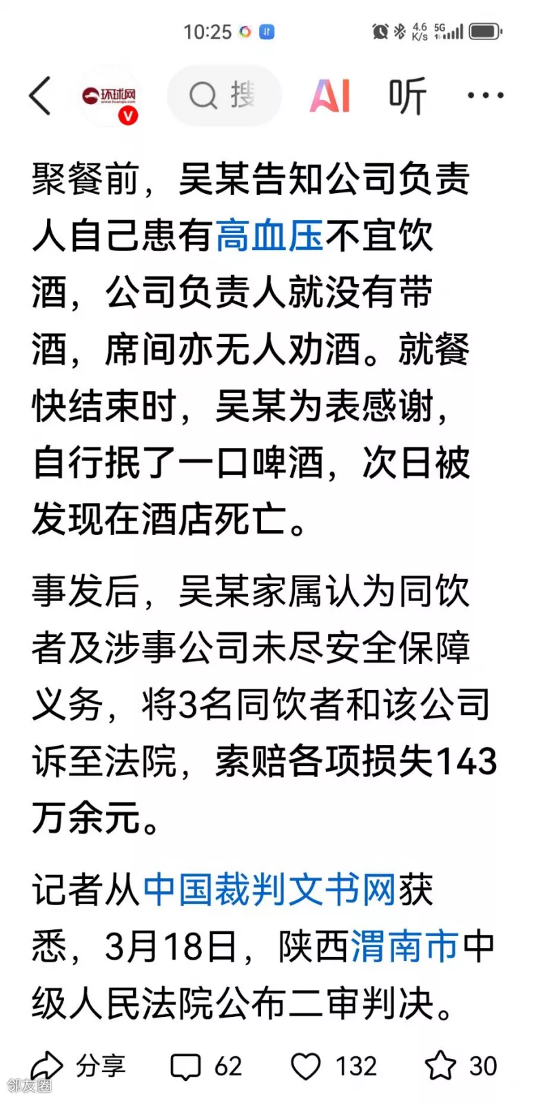 男子聚餐时抿了一口啤酒,次日死亡,家属索赔143万元!