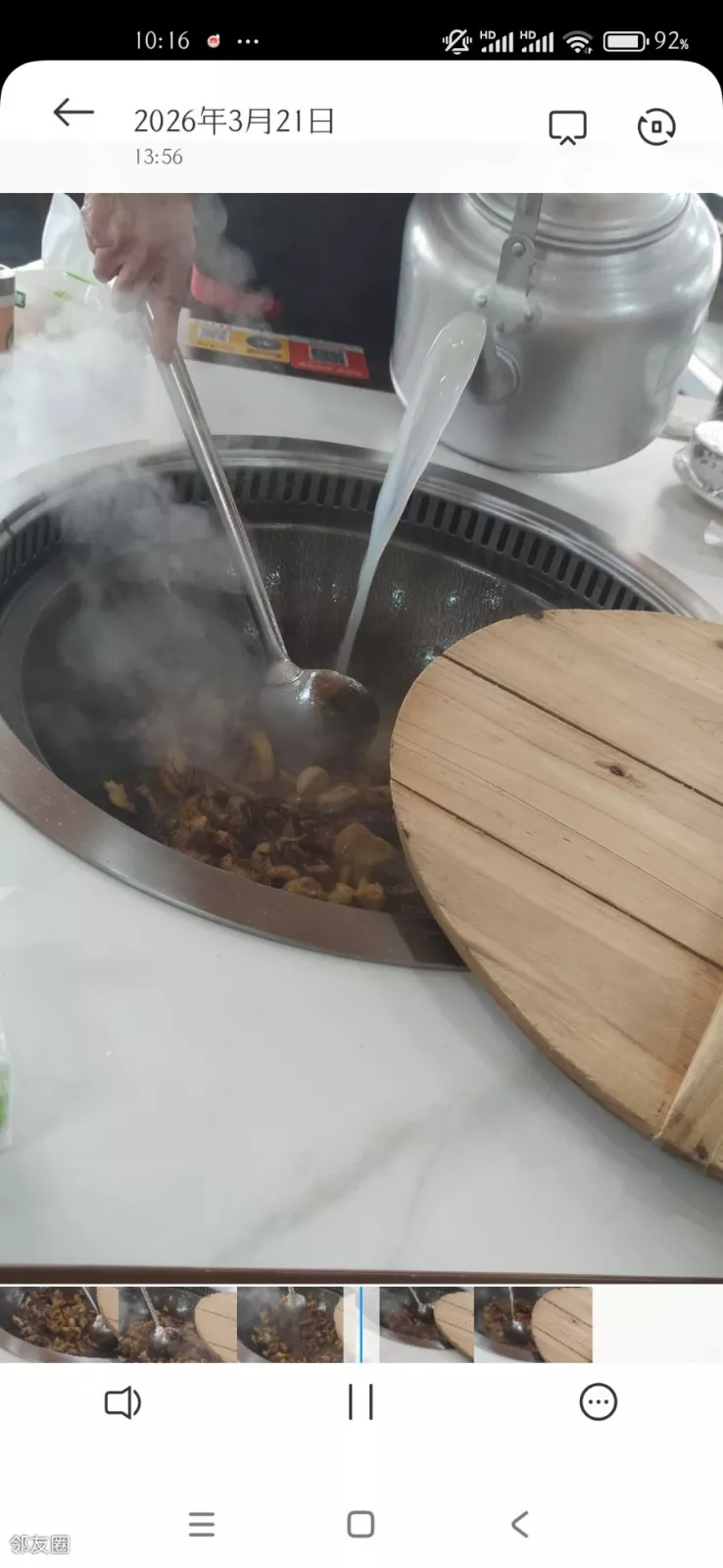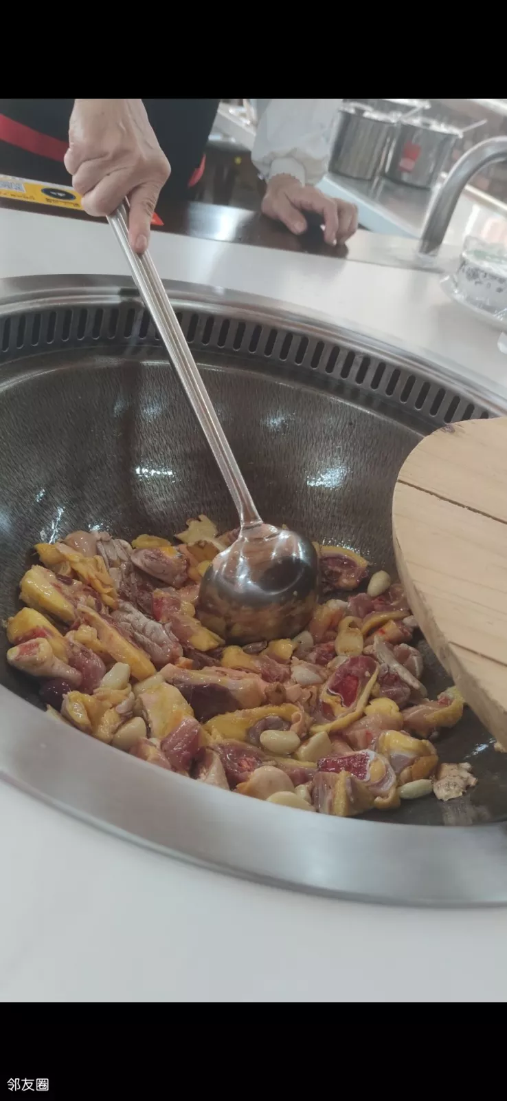 就在鸡刚炖好,服务员掀开锅盖告诉我们可以吃了的时候社牛出现了,边上吃饭的一个女的端着盘子跑到我老公旁边说可以给我一块鸡肉吗,我尝尝好不好吃!把我老公吓一跳,我也懵了一下,我们相视而笑