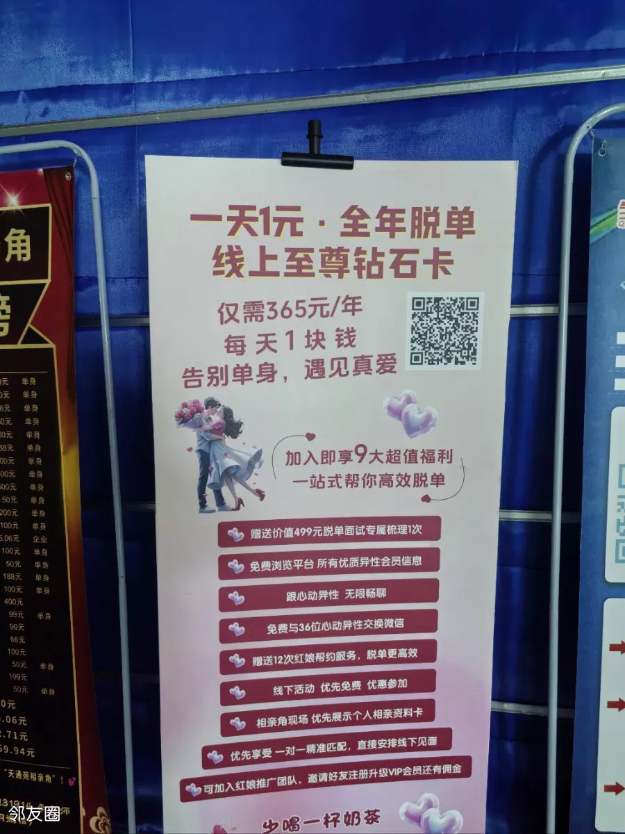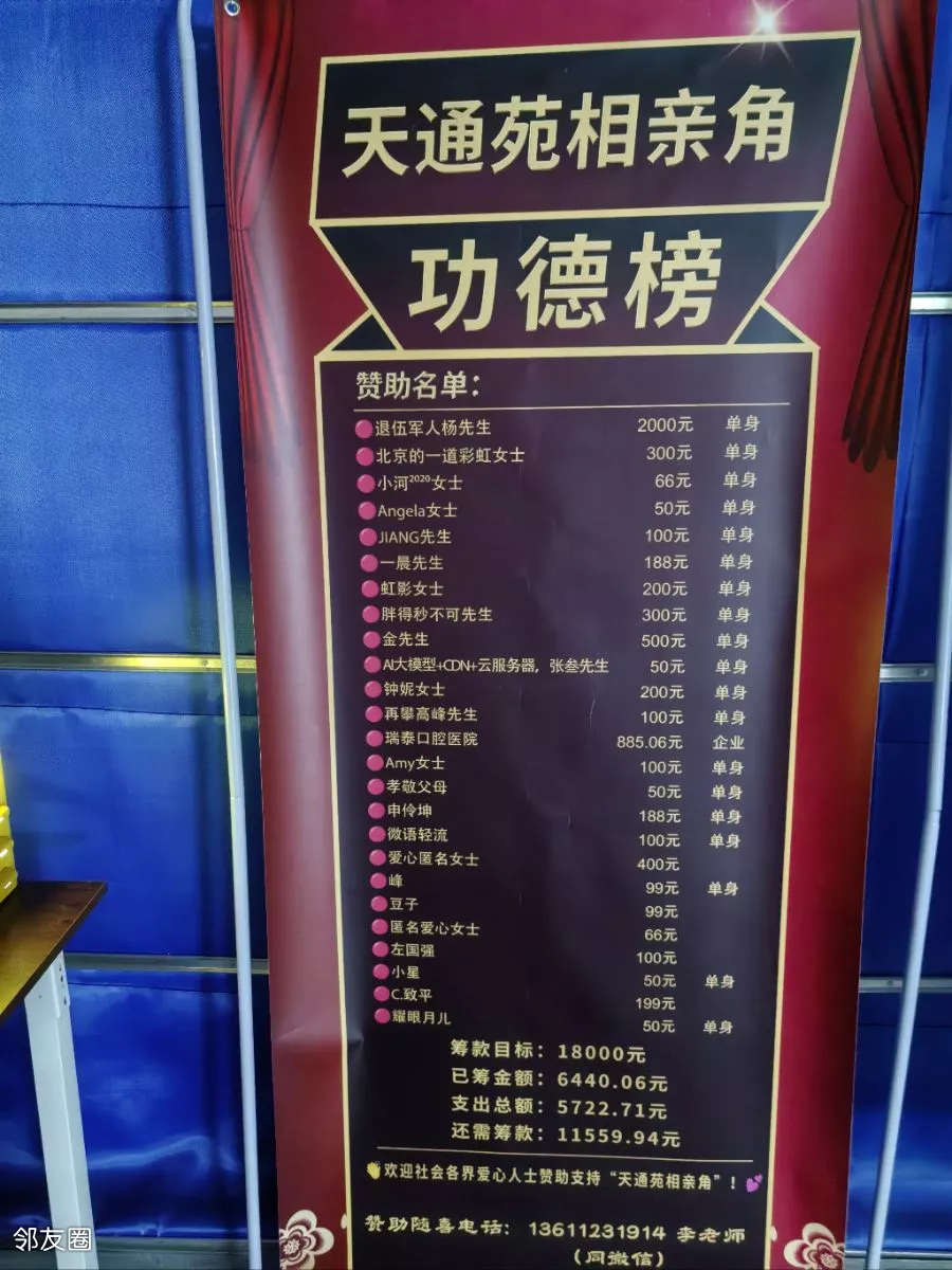 天通苑万优汇有个相亲角,每天只需一元!相亲角有大批单男单女!你可仔细挑选,对号入座!只要诚信脱单,总有一款适合你!千里姻缘一线牵,相亲角实在功德无量!