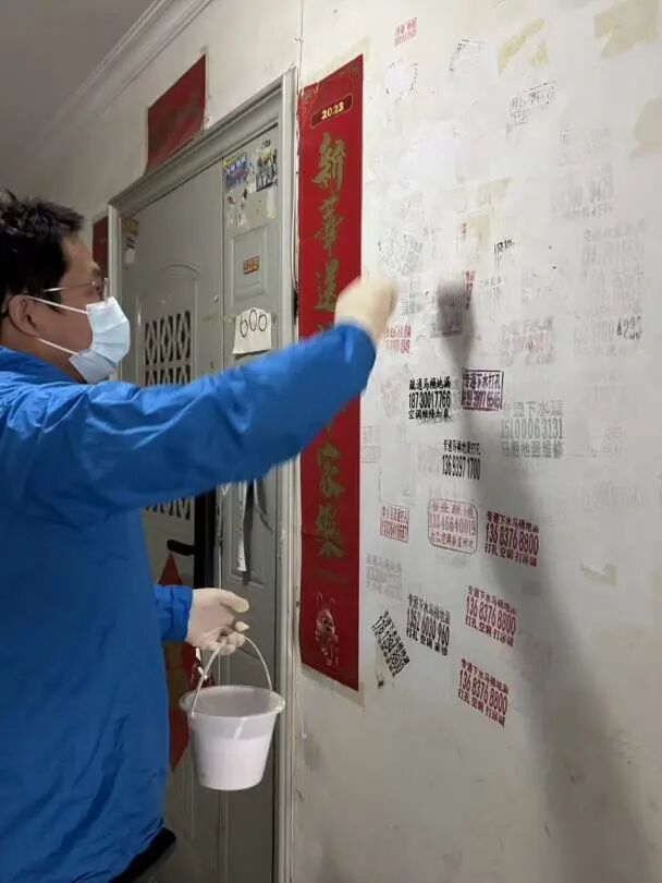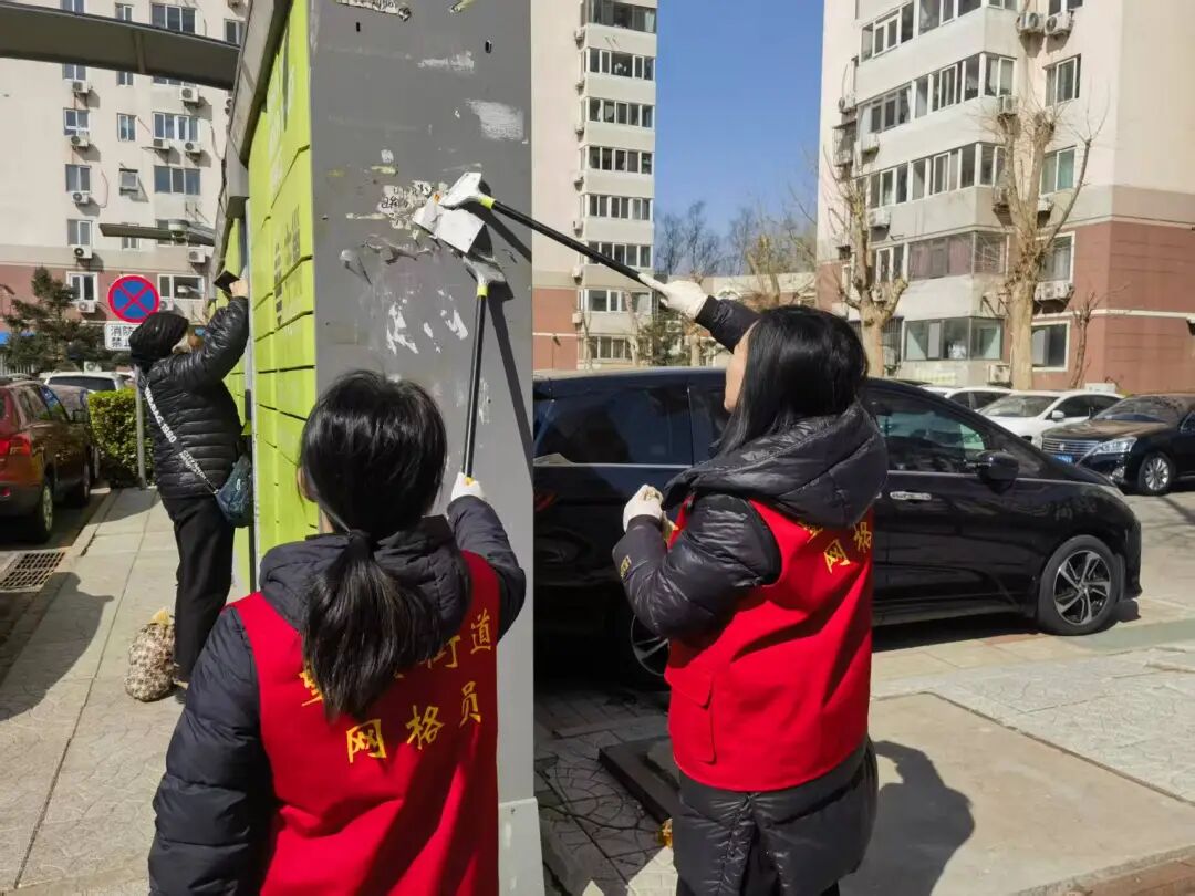 非法小广告乱贴乱画、乱喷乱涂,不仅严重破坏社区墙面、楼道、公共设施的整洁美观,更夹杂着虚假信息、违规推广等内容,既影响社区整体形象,也存在一定安全隐患。此次小广告治理专项行动中,各社区坚持“全域覆盖、不留死角、彻底清理、长效管控”原则,依托网格化治理体系,组建由社区工作人员、网格员、物业工作人员、党员志愿者、居民代表等组成的专项整治队伍,对辖区内所有楼栋、楼道、单元门、电梯间、消防通道、公共宣传栏、电线杆、垃圾桶及主次干道两侧等重点区域,开展拉网式、全覆盖排查清理。