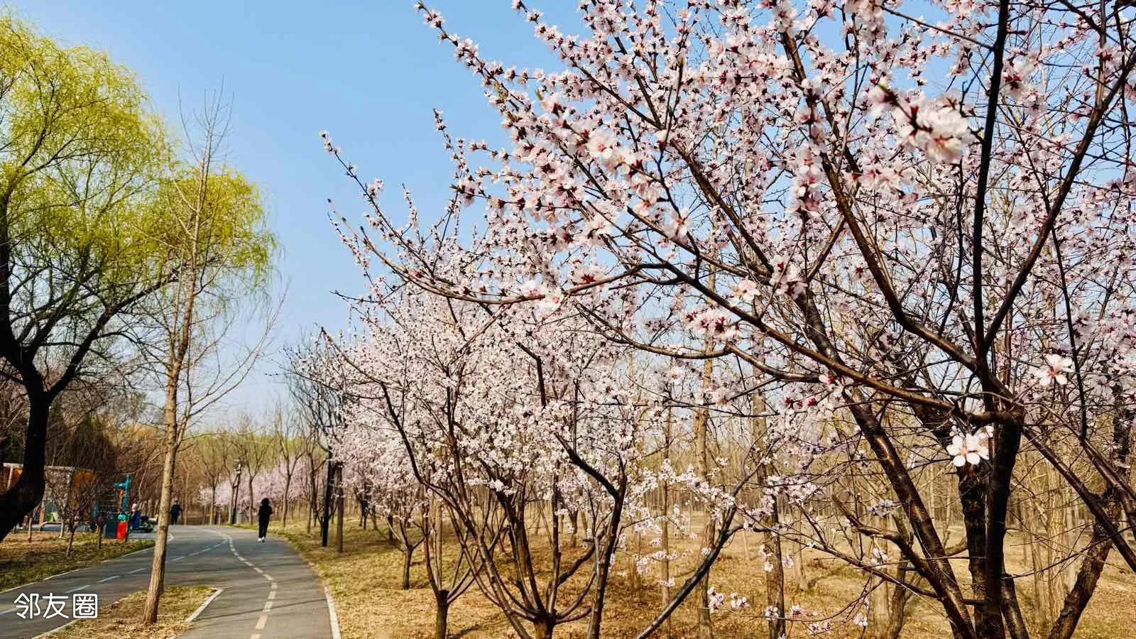 朝阳绿道杏花盛开,花海香氛浓郁,绿色甬道有了花枝摇曳,步入绿道时,心情也愉悦起来。