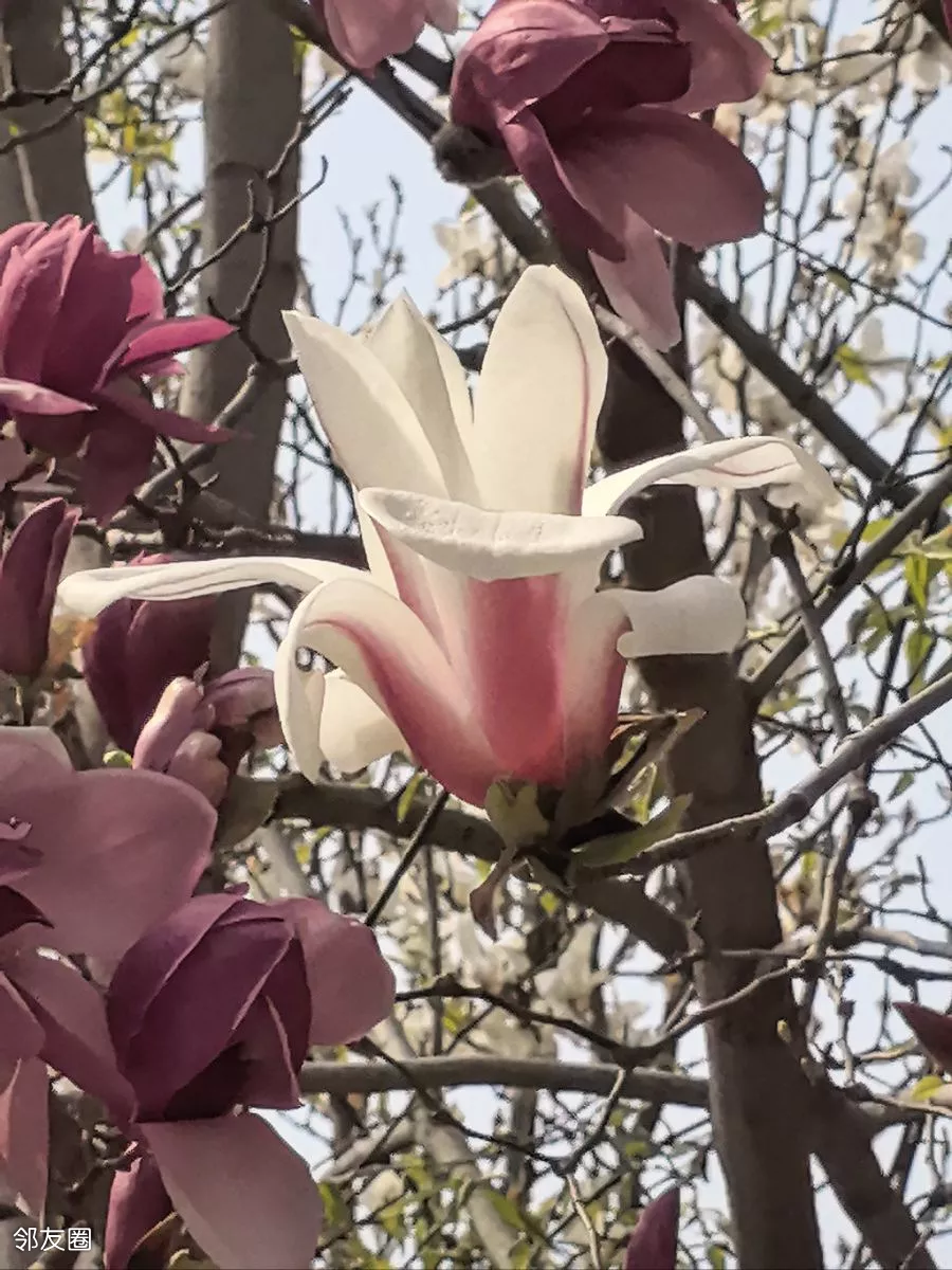 最幸运的事情是什么:当你无多期待的出门,却和春日美景装了个满怀。就象今天偶遇的双色玉兰,让你觉得和春日撞了个满怀,猝不及防的觉得人间值得,生活如此的美好……(这种颜色的玉兰是不是很少见)