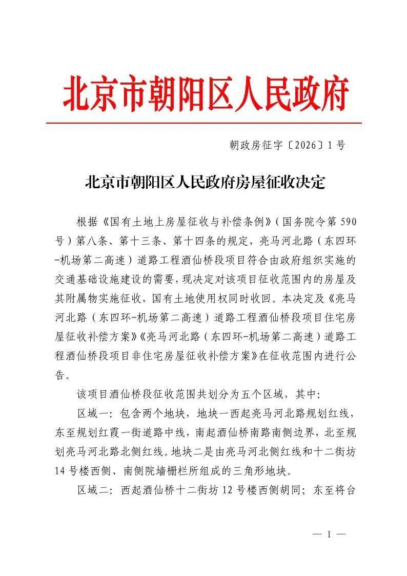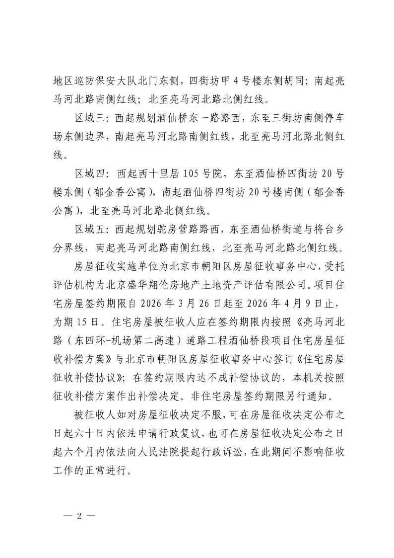 亮马河北路(东四环-机场第二高速)道路工程酒仙桥段房屋征收