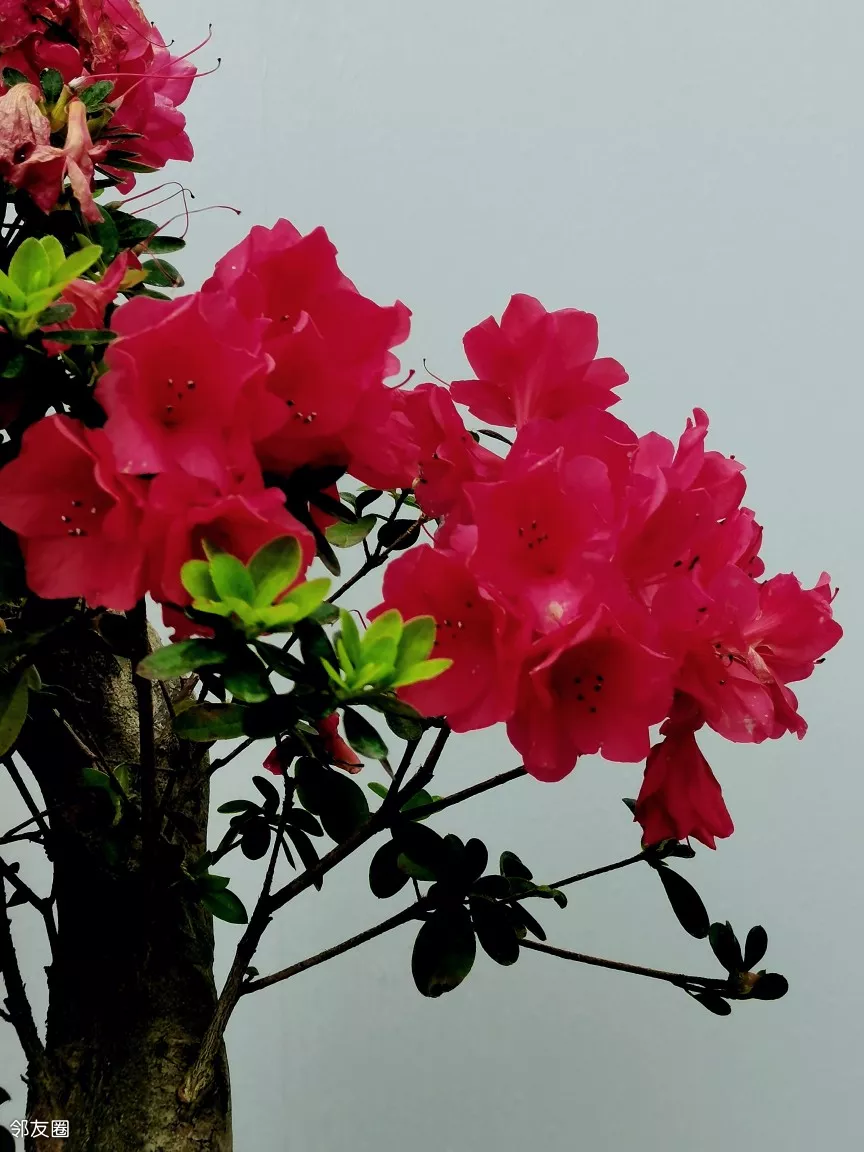 杜鹃花里杜鹃啼,浅紫深红更傍溪,红如火,粉似霞,春色无边入画来。