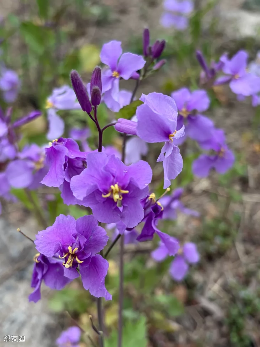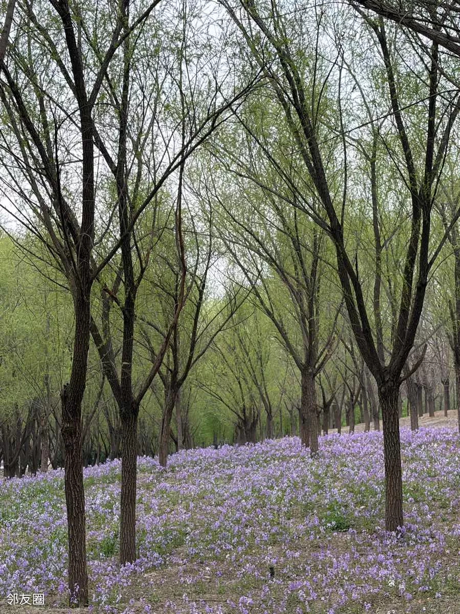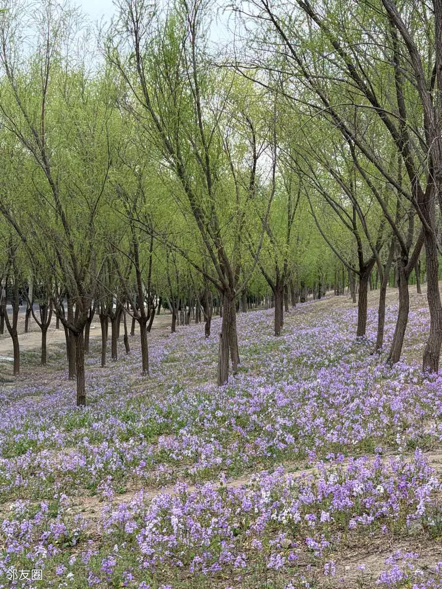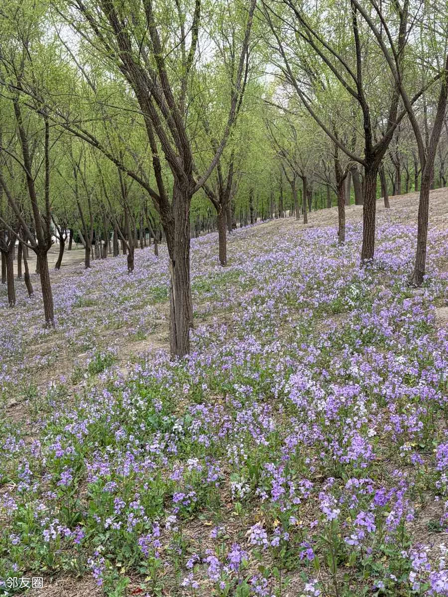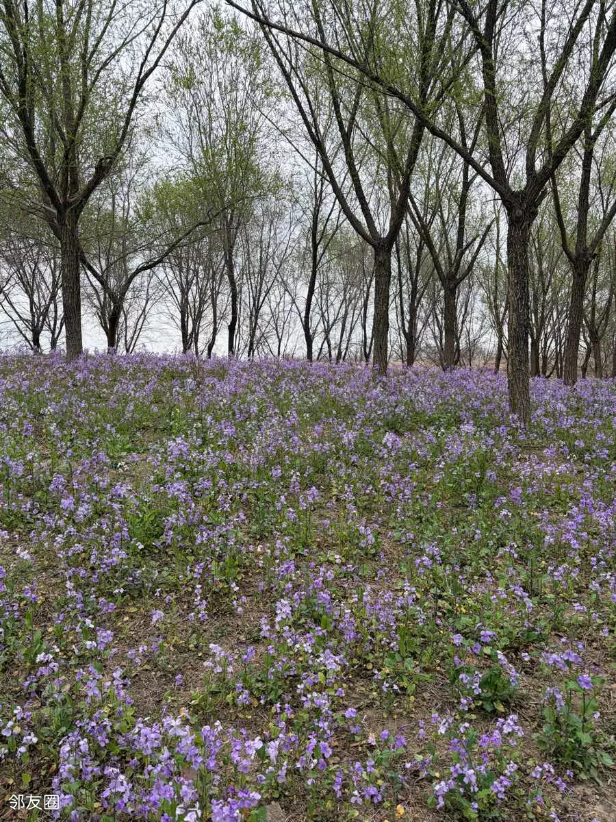 一抹蓝紫撞进眼帘,二月兰铺就的梦幻花毯,随风轻摇。