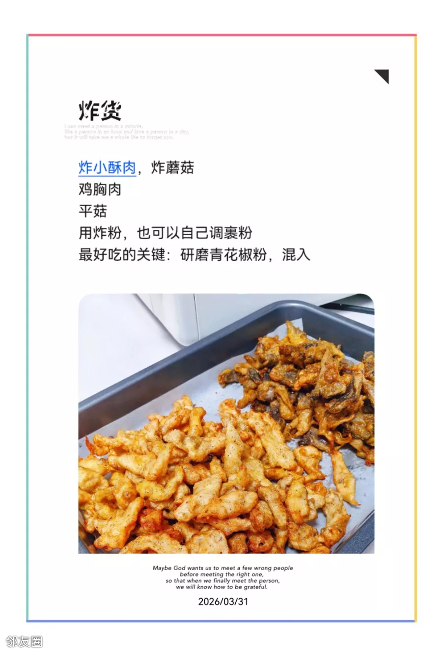 因为喜欢……炸小酥肉,炸蘑菇😊