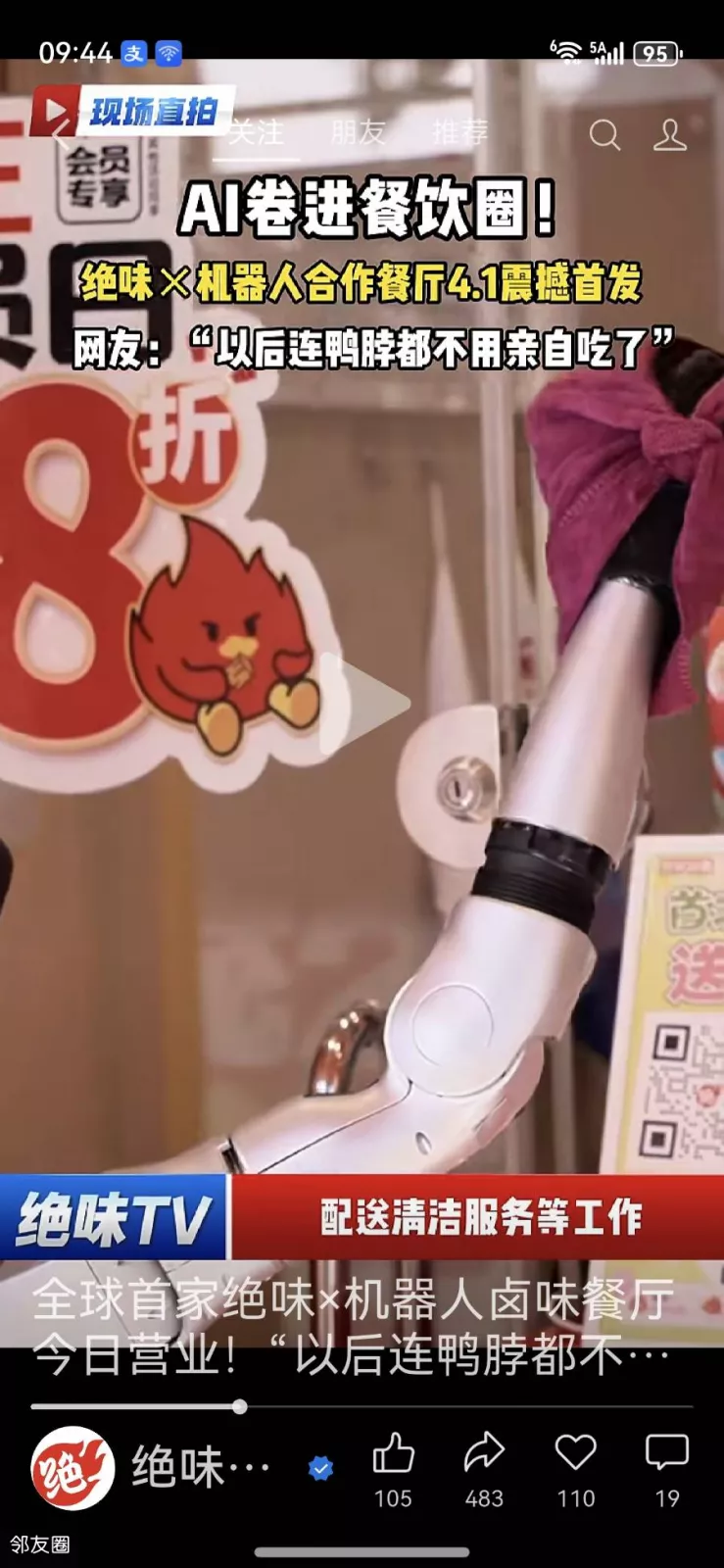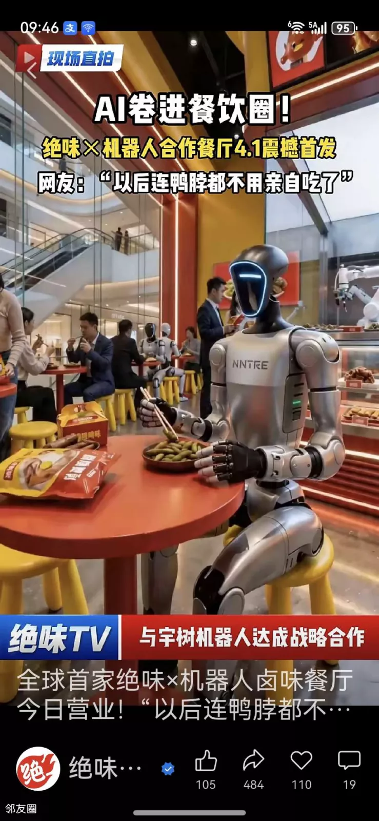 你敢信吗,绝味鸭脖与宇树机器人联手的Ai餐厅正式营业,不单销售是机器人,连熬制卤味的核心技术岗位也是机器人……