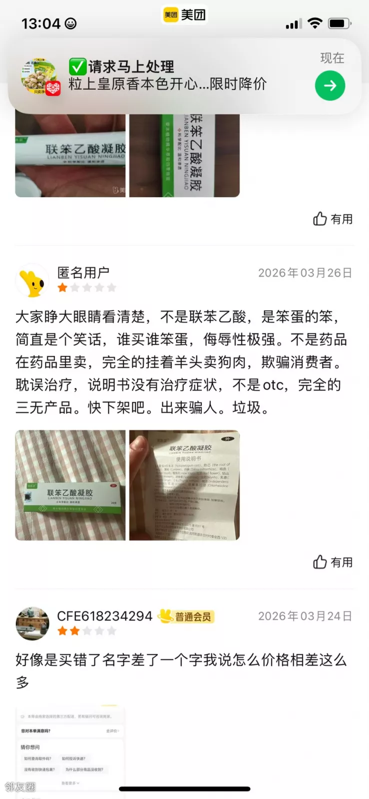 在网上买连苯乙酸,一种外用止疼药。看到两种,价格相差三倍。怎么差这么多?点进去看了一下,包装盒不一样,但是也没发现其它问题。去看评价,才看清楚了,便宜的叫连笨乙酸。我不说卖个关子,有谁看明白了吗