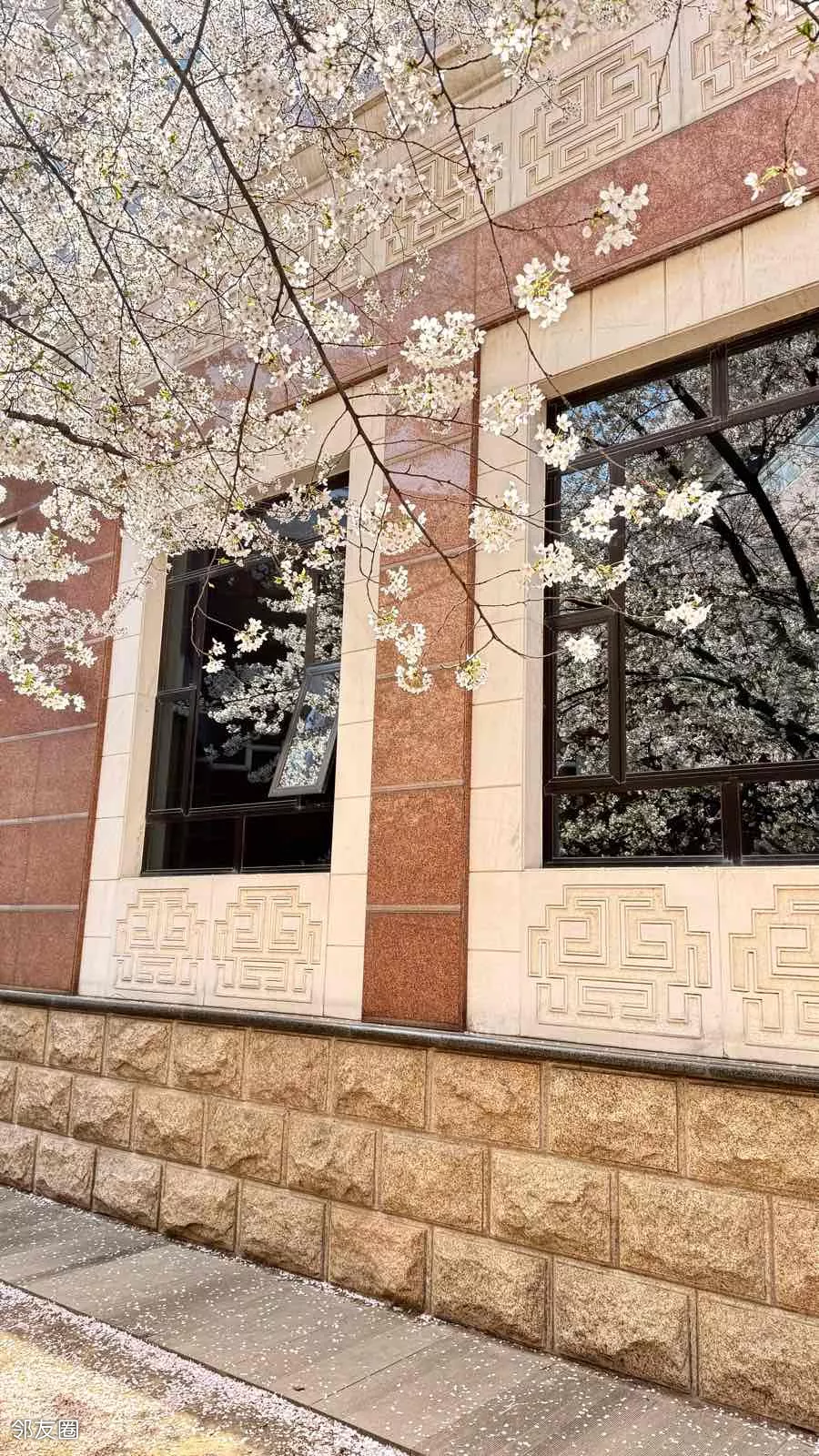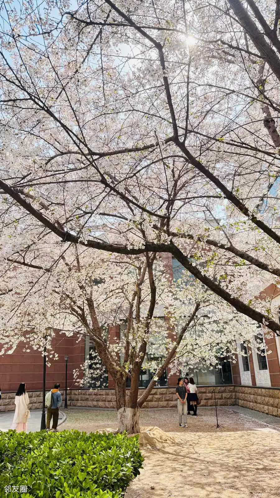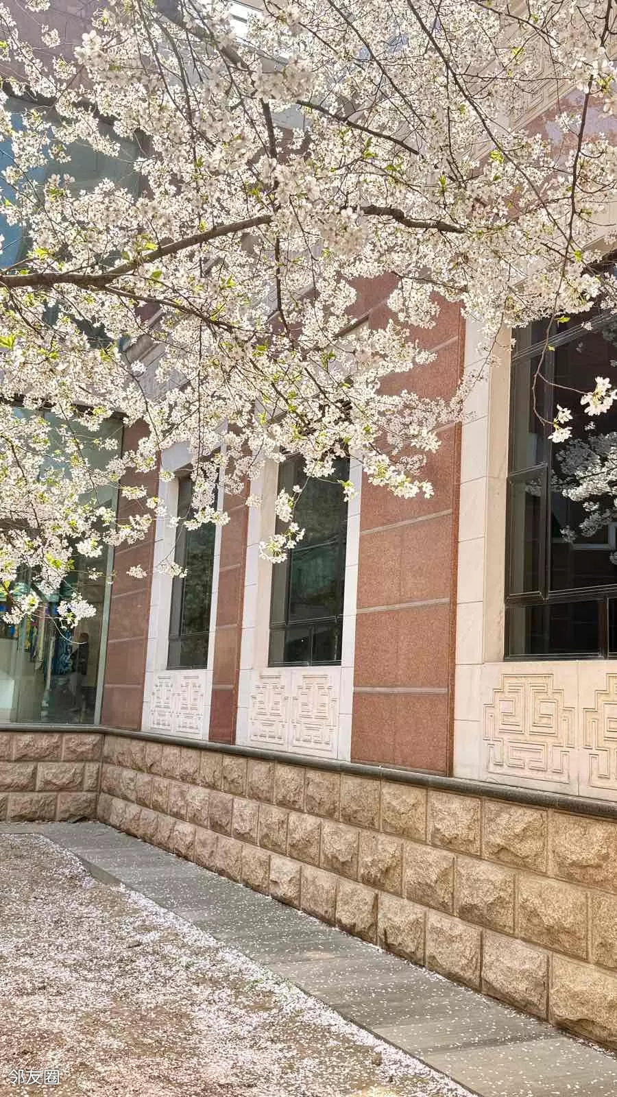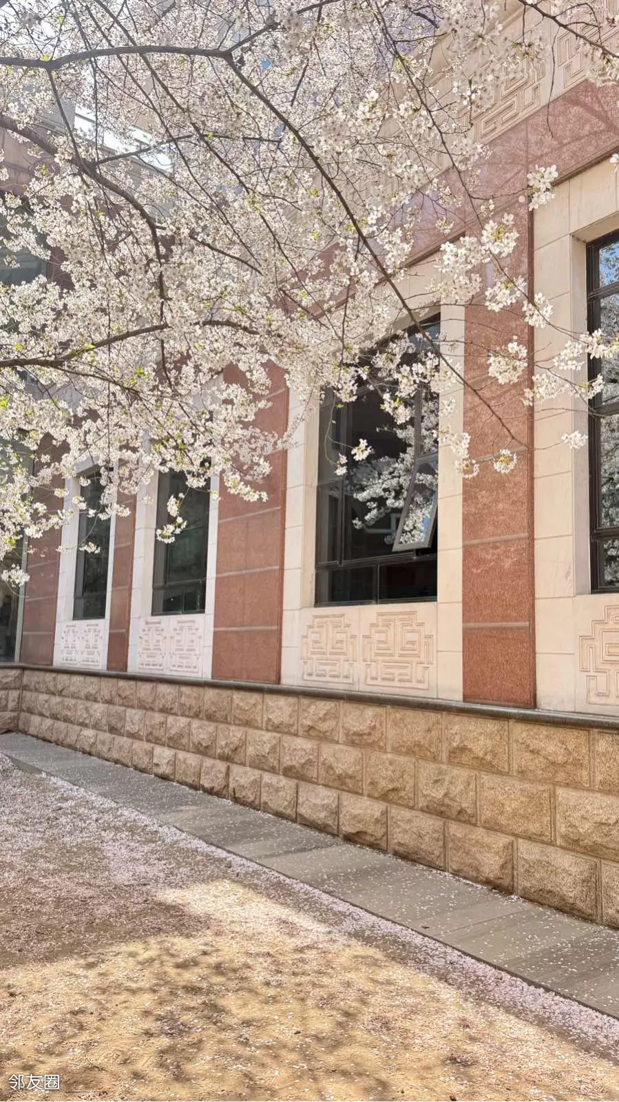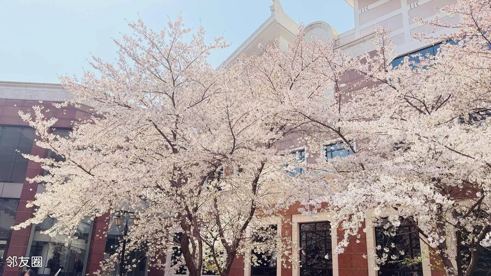 文学馆内的樱花树吸引不少游客抢拍,微风落樱,如雪散花。