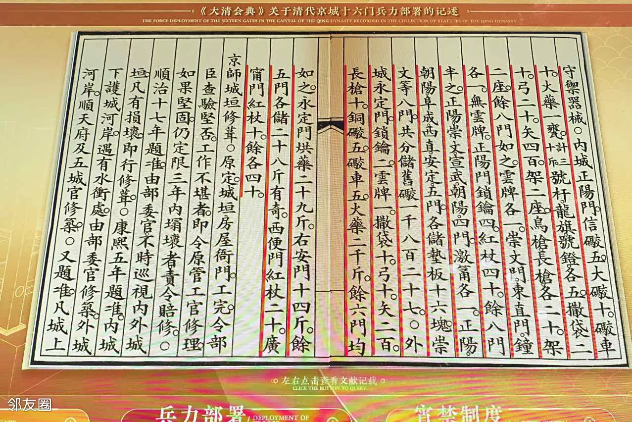 “大清会典”中北京16城门兵力部署记述