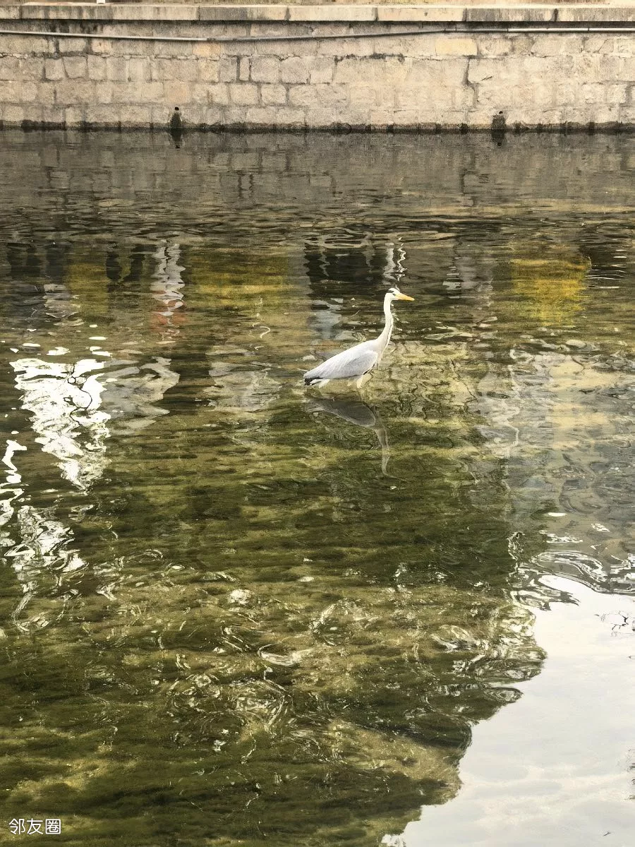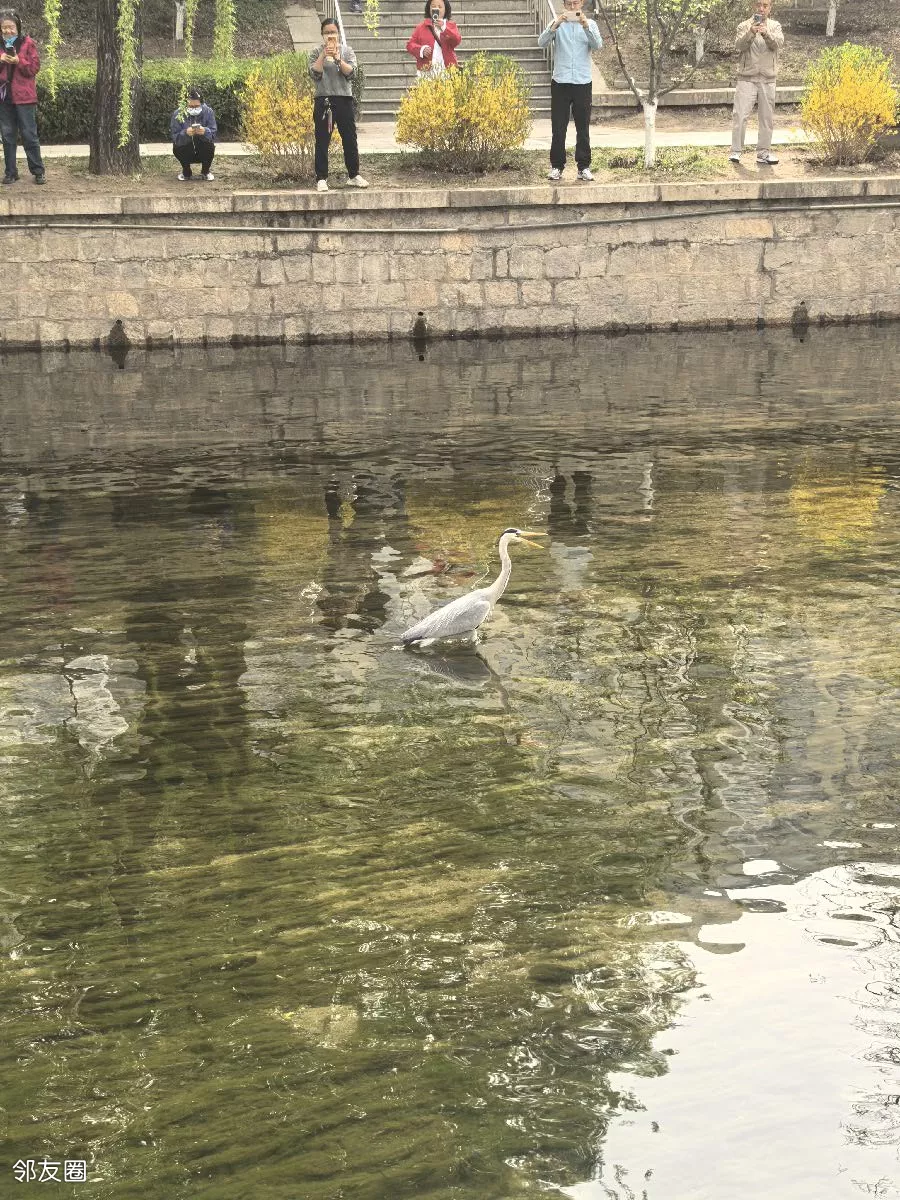 元大都遗址公园飞来一只苍鹭,大明星哟
