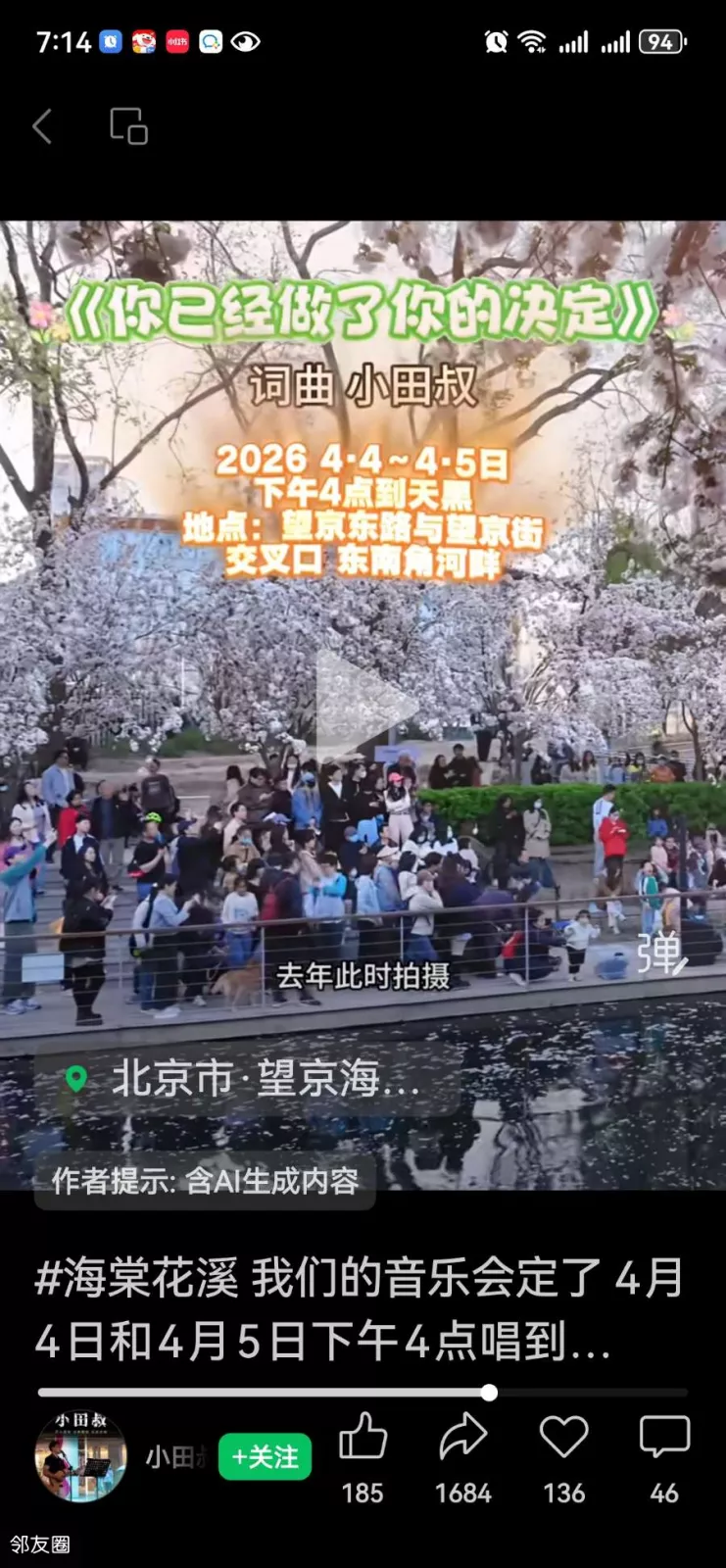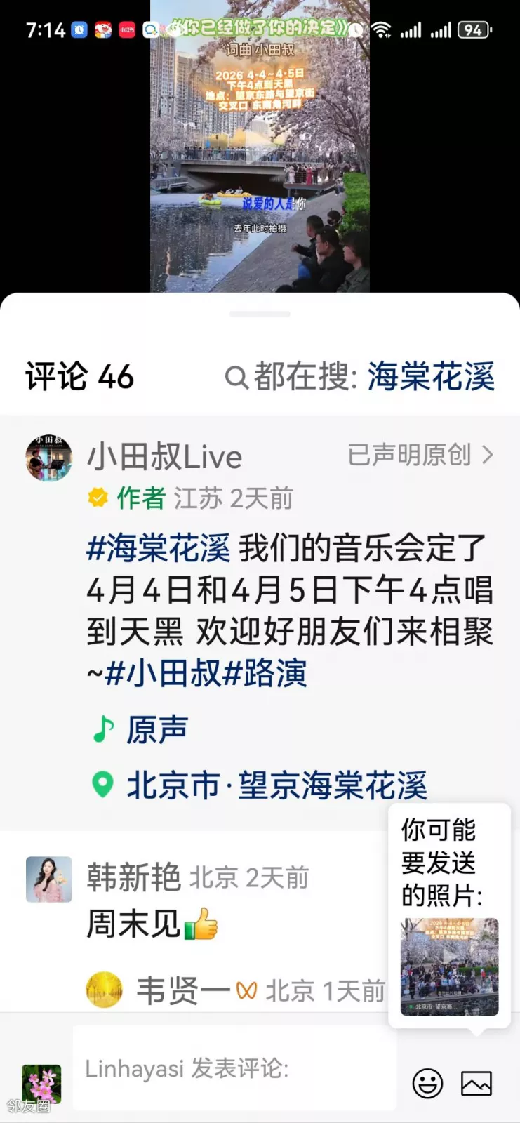 望京海棠花溪明天下午开始有音乐会!假期不想出望京了