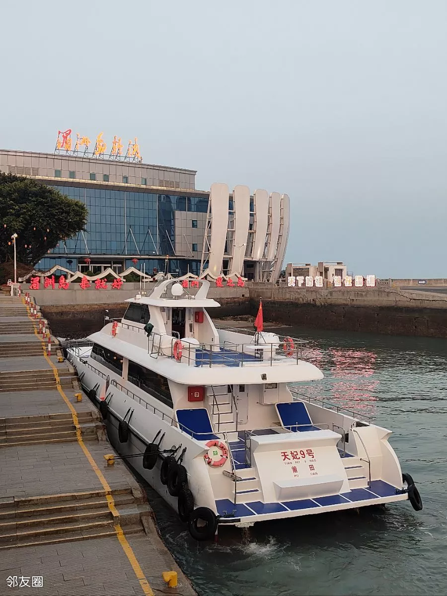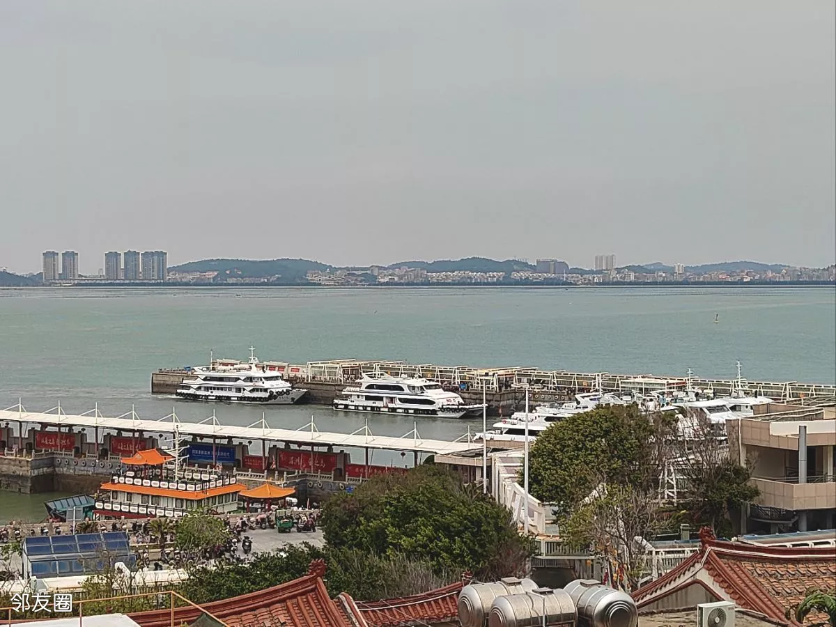 莆田球场离湄洲岛很近。莆田站在市区与湄洲岛之间,哪儿哪儿都不靠,下车后直接坐前往文甲码头的大巴,40多分钟到码头。他去酒店办理入住,我直接上岛。