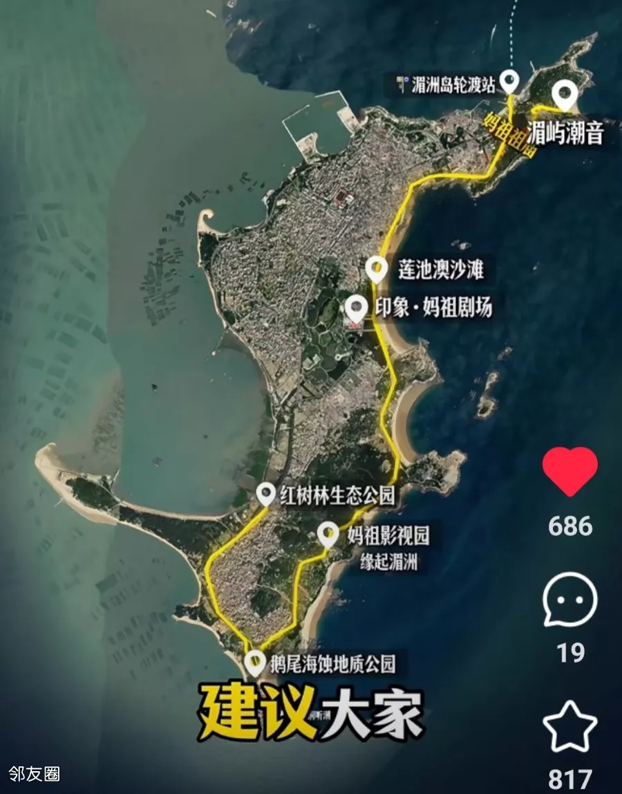 拜完妈祖开启环岛游。湄洲岛分南线北线,长条形,岛上有电瓶车,一般都是多人一起包车,或者租车环岛,或者租小电动环岛。我不会骑车,就很麻烦,只能步行+公交,公交不是每个点位都去。