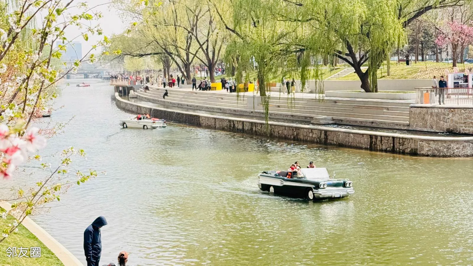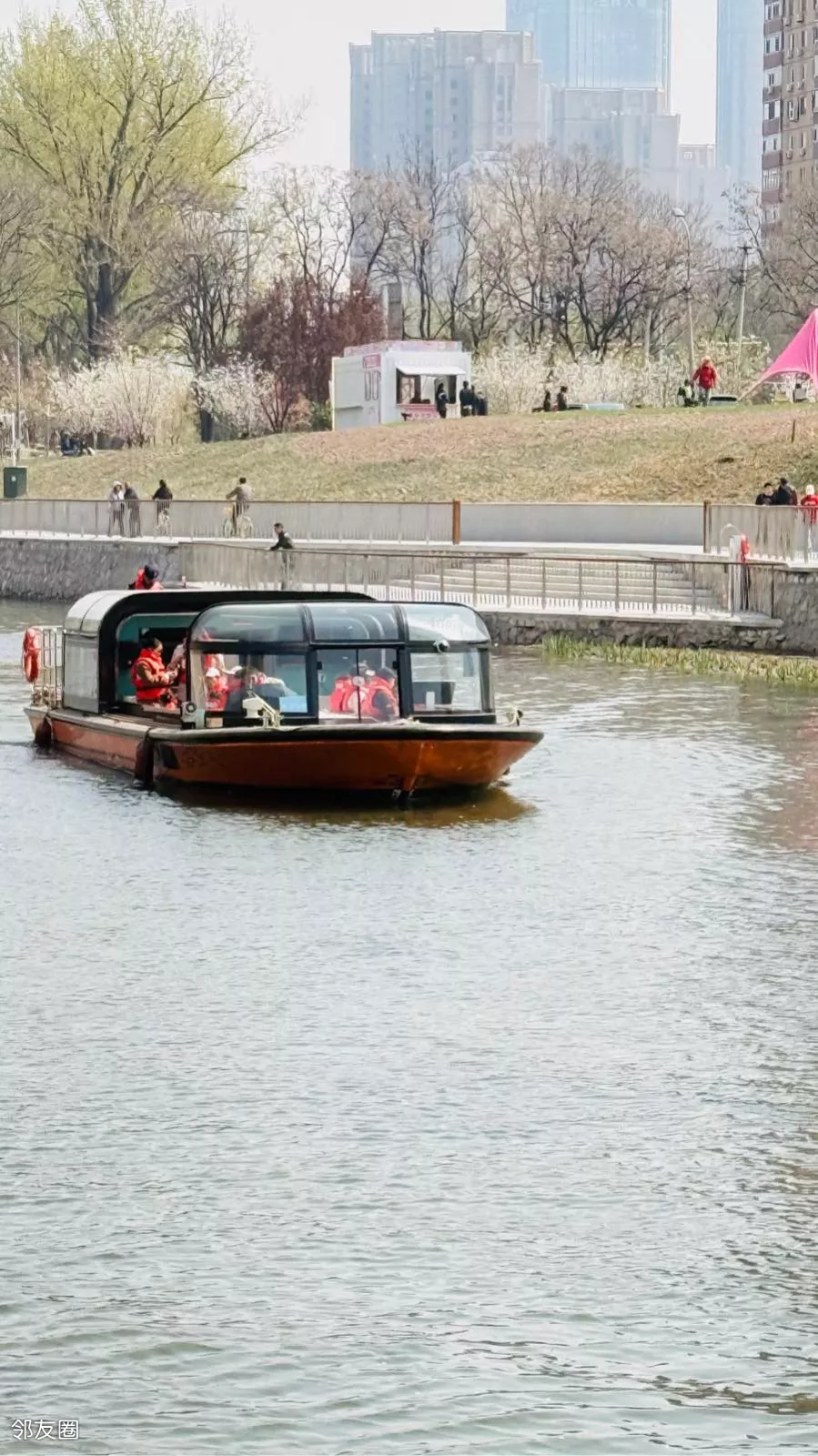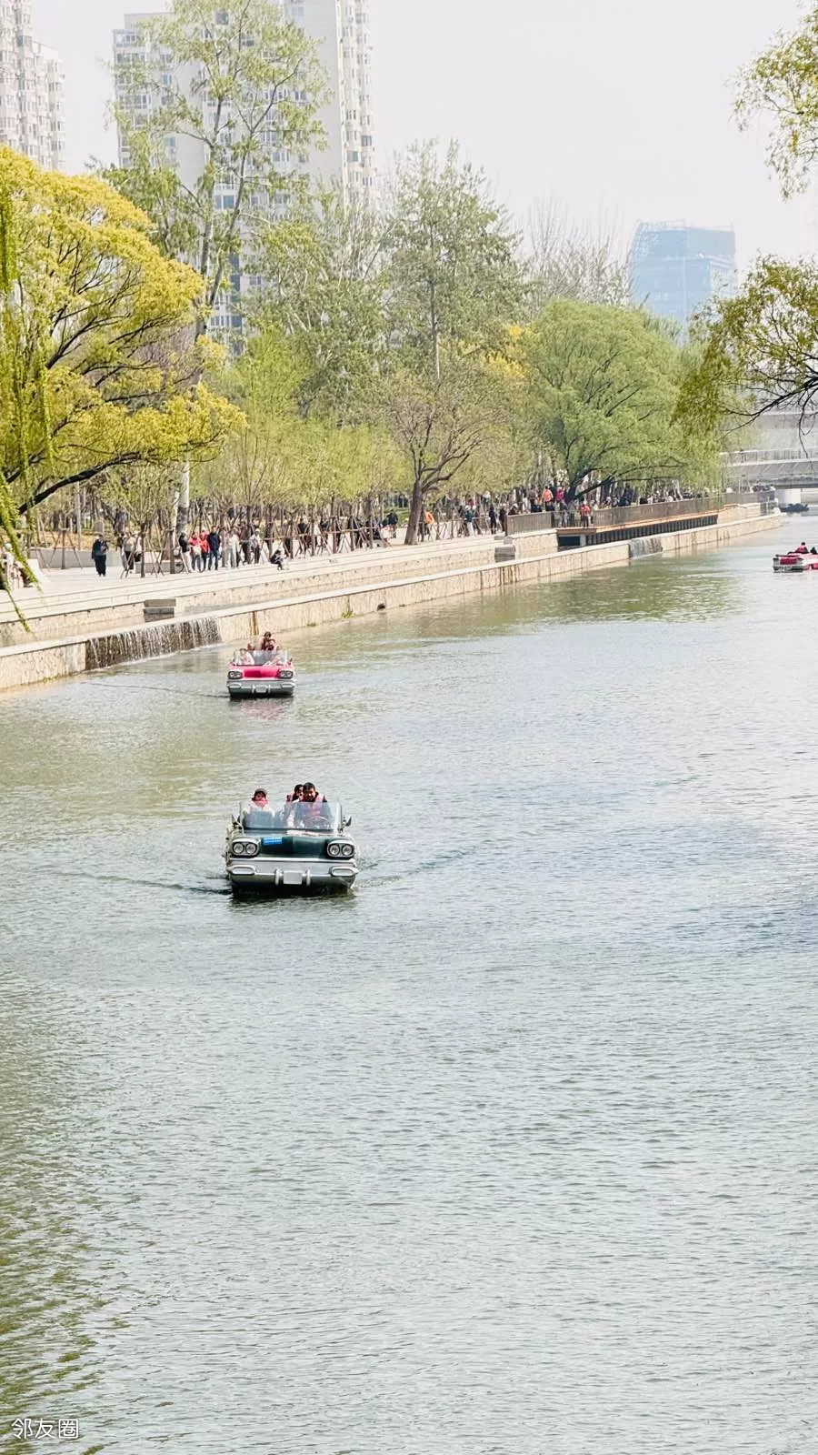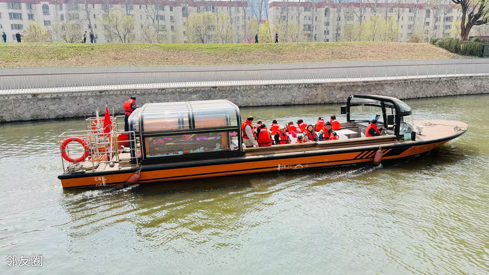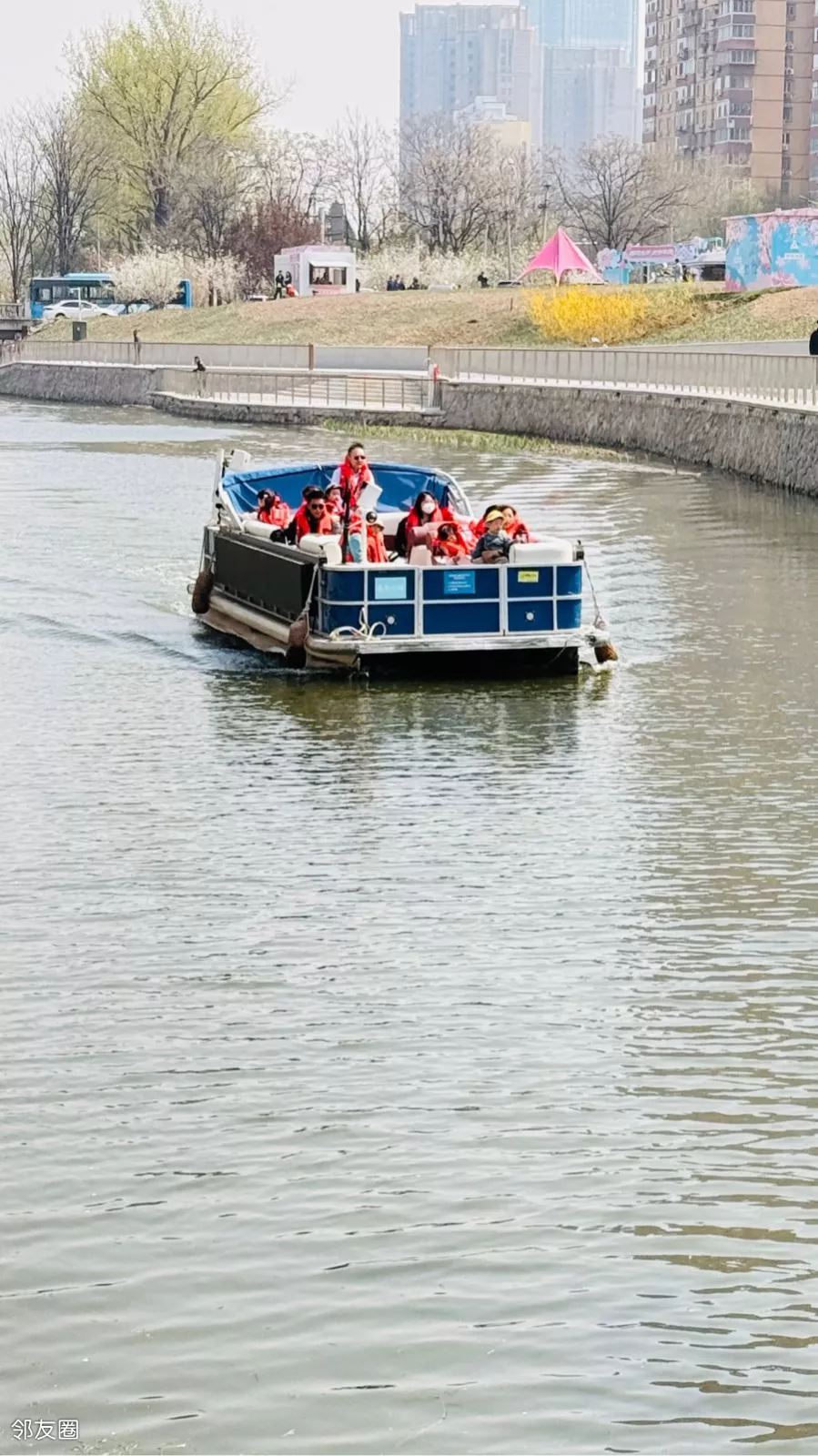 北小河上行走的船,大船、小船在水中荡漾,泛起层层涟漪,悠闲又惬意。