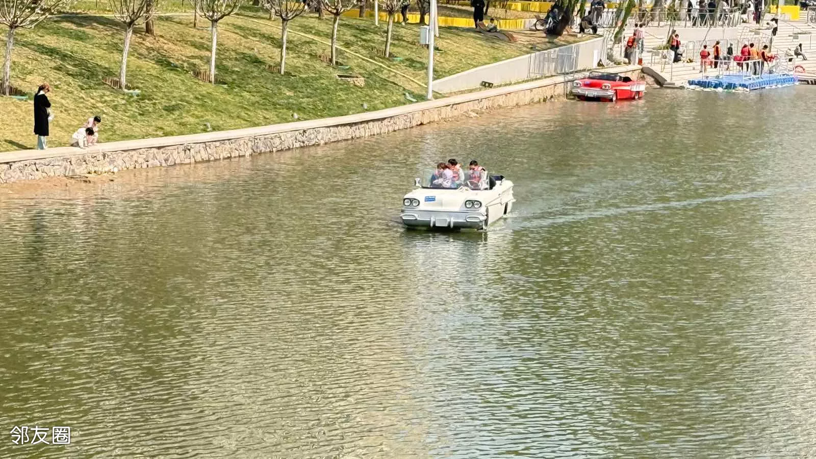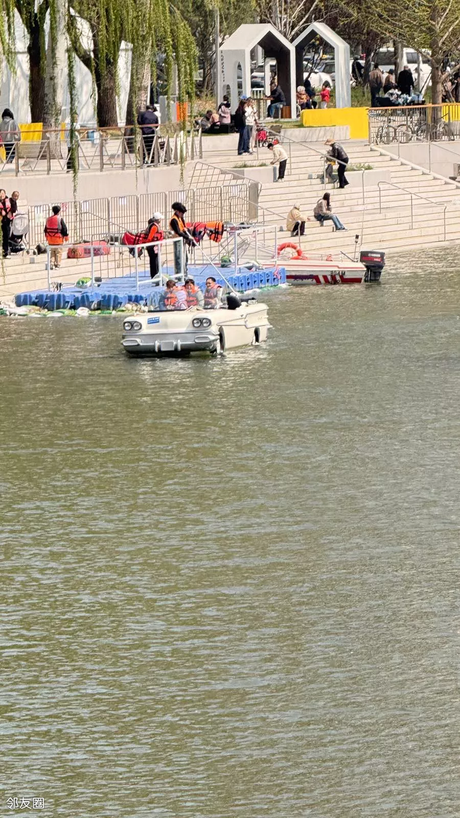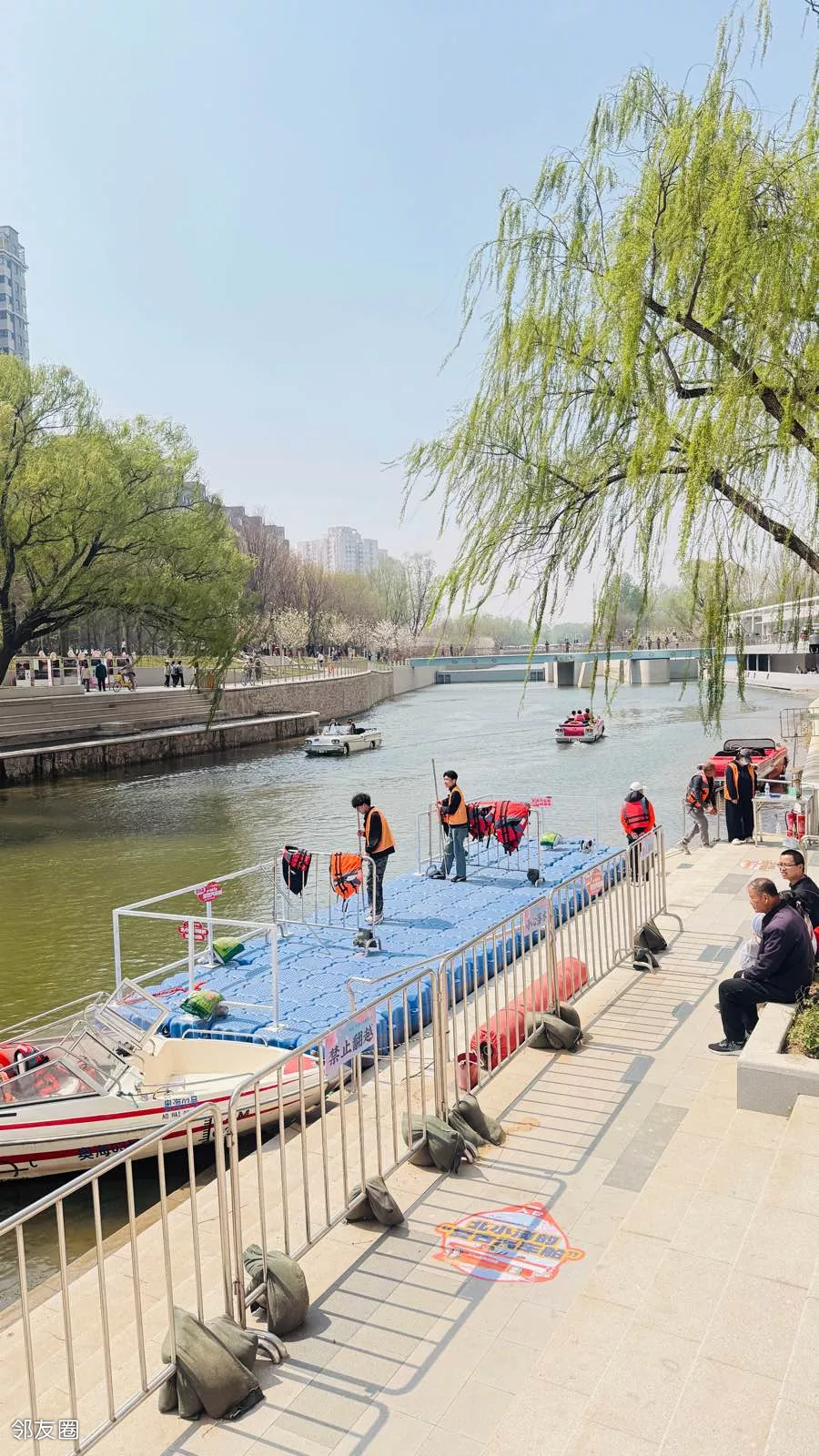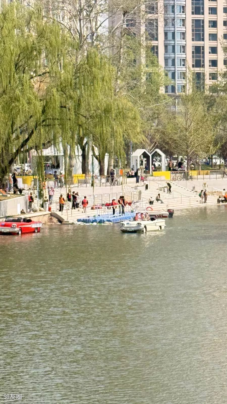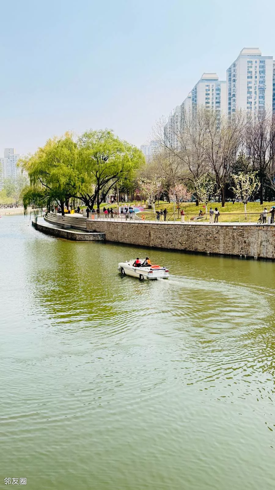 北小河上行走的船,大船、小船在水中荡漾,泛起层层涟漪,悠闲又惬意。