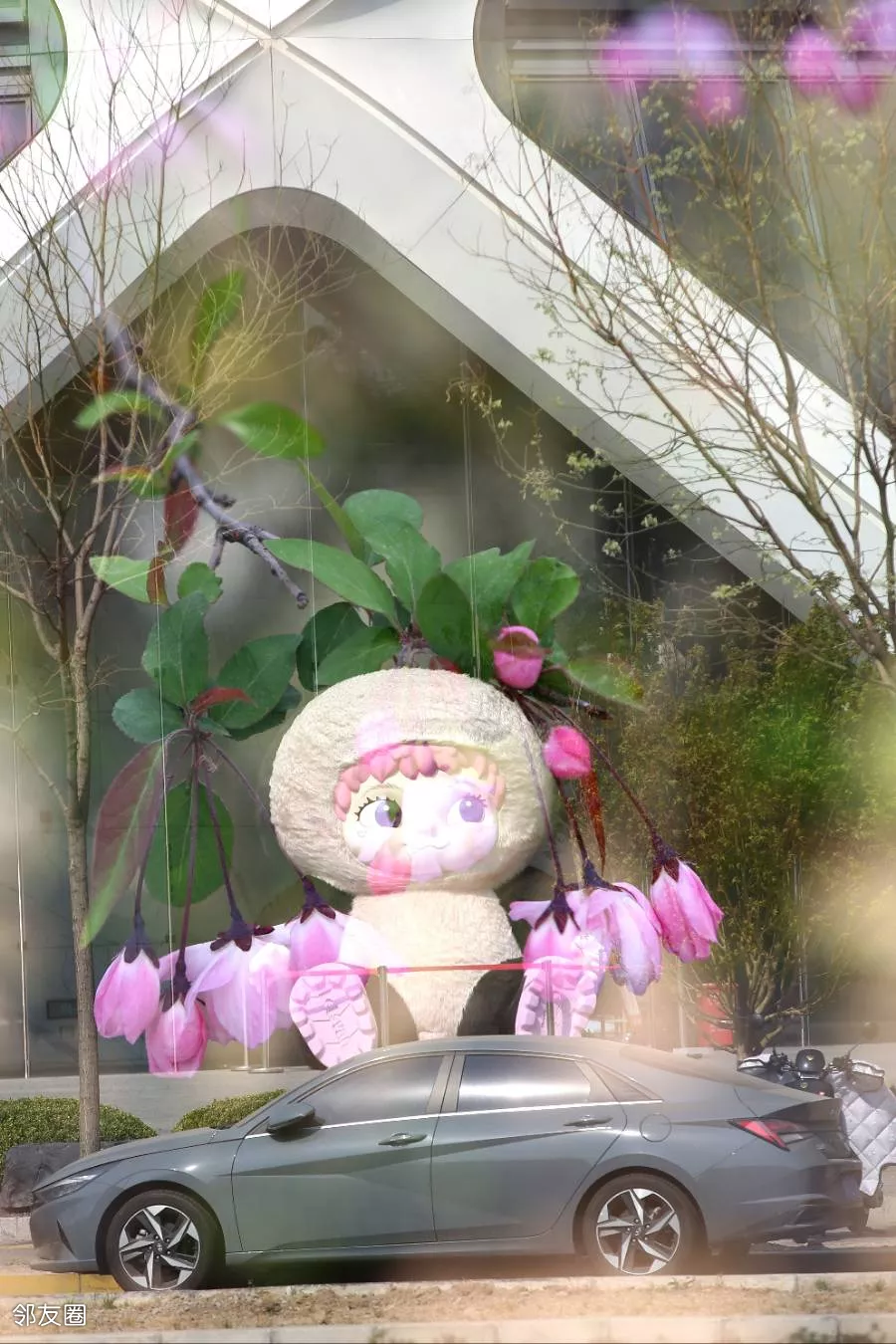 从公园出来,发现一辆跟我同款的车,有个卡通羊好像坐在车顶上。胡乱拍了一张,羊羊的jio变成粉色的了