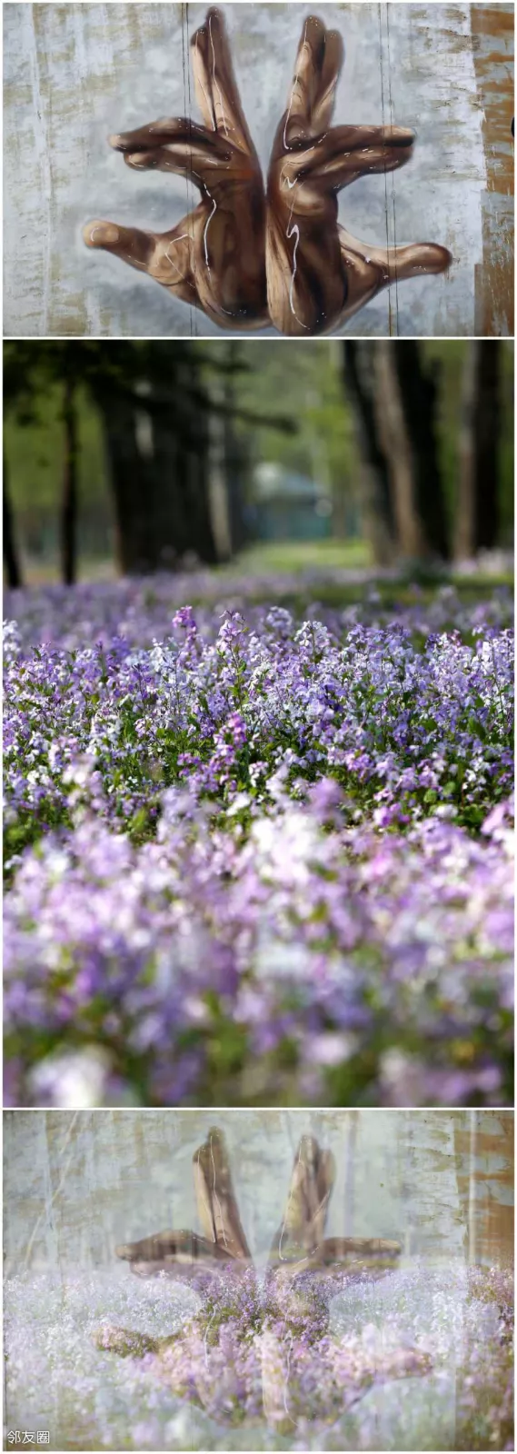 相信90%的望京人都不知道这个手势图在哪儿和它是啥含义(我也不知道啥含义),而且它附近有一片二月兰,让它们合二为一会成为一张美图。这时候还在公园外面