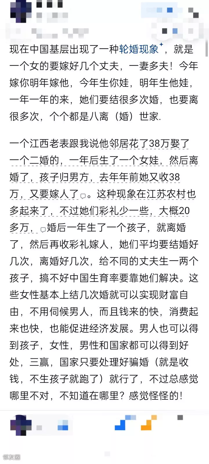 据说部分地区出现了所谓的轮婚。 这不是卖身一样嘛,貌似这个词还没有大范围使用,但是部分地区已经把这种现象叫做“轮婚”了