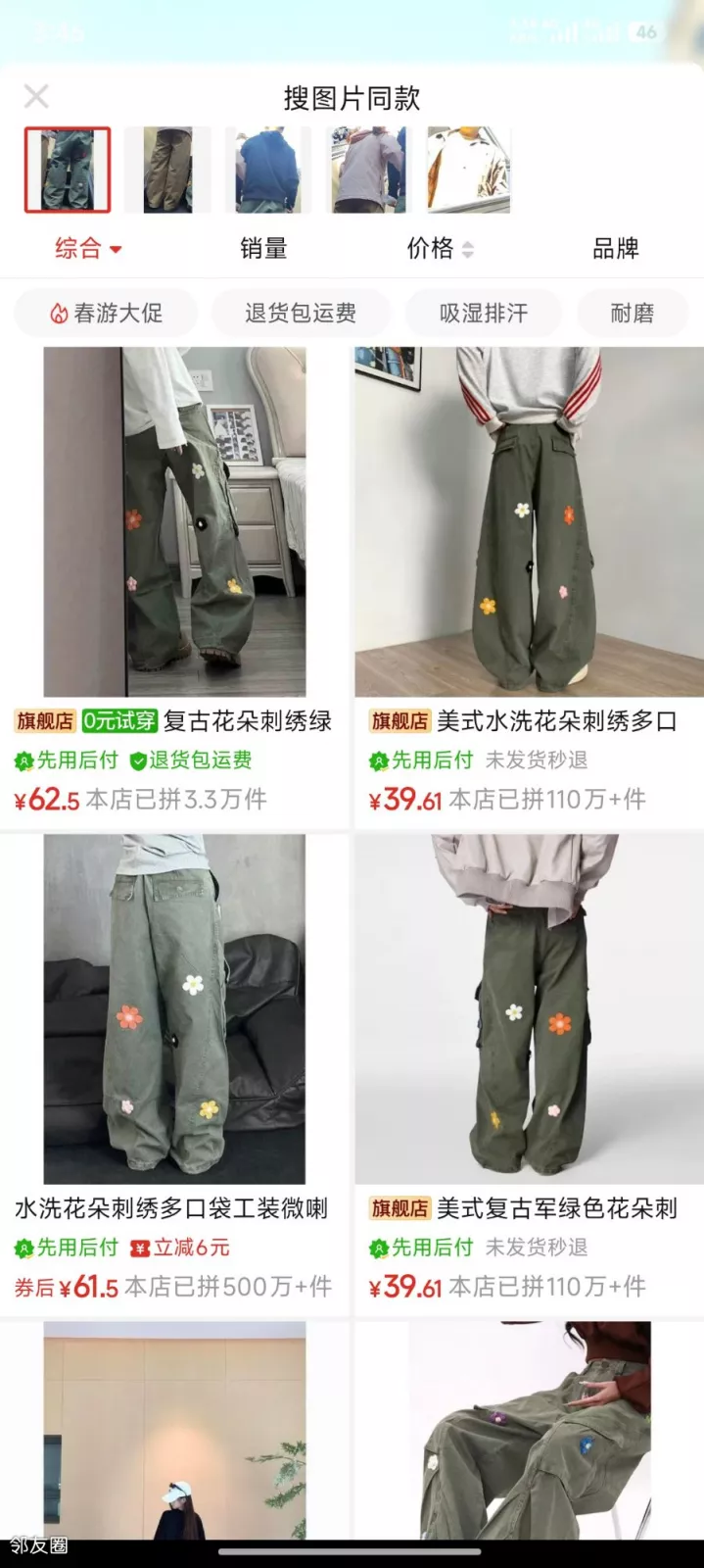 结合旁边同款,可以理解为男士穿的比较费,女朋友帮他用小花打的补丁。