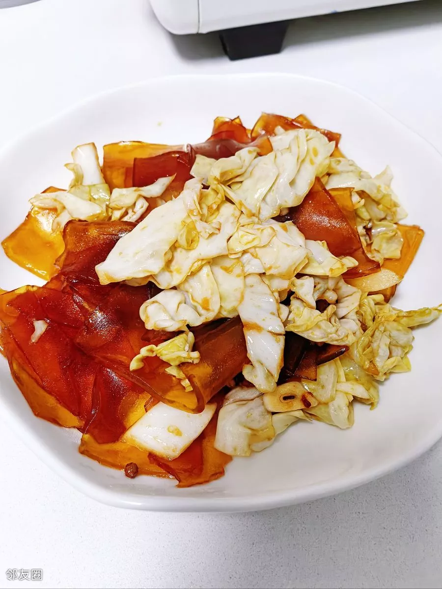 “泡的宽粉,平底锅里还有那个玉米饼”