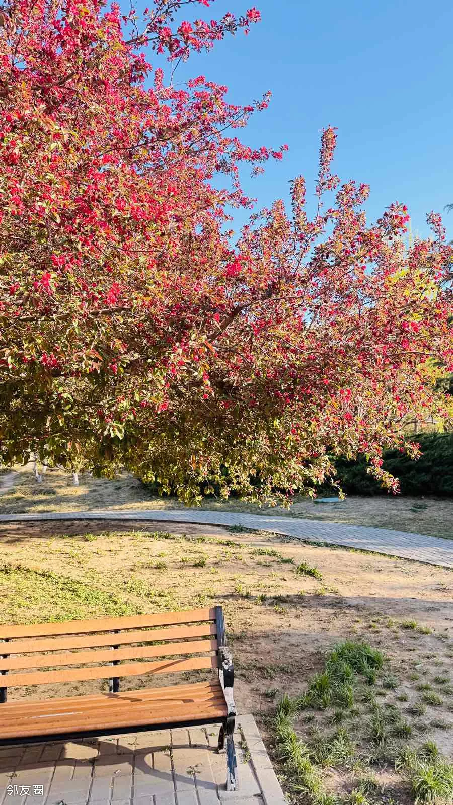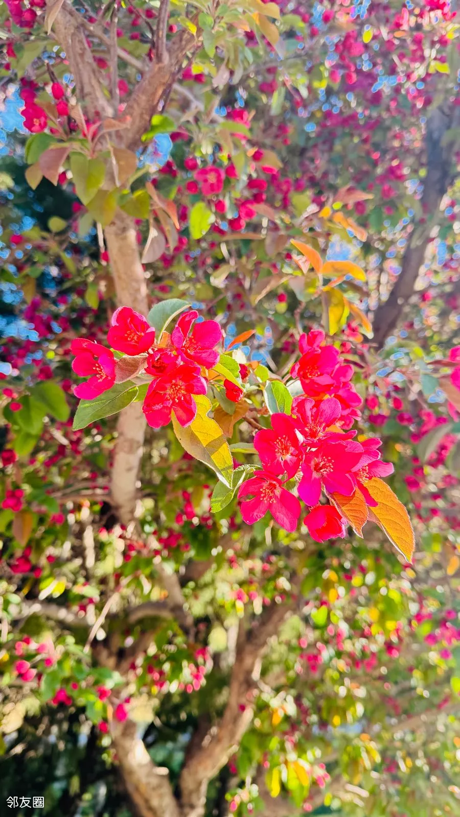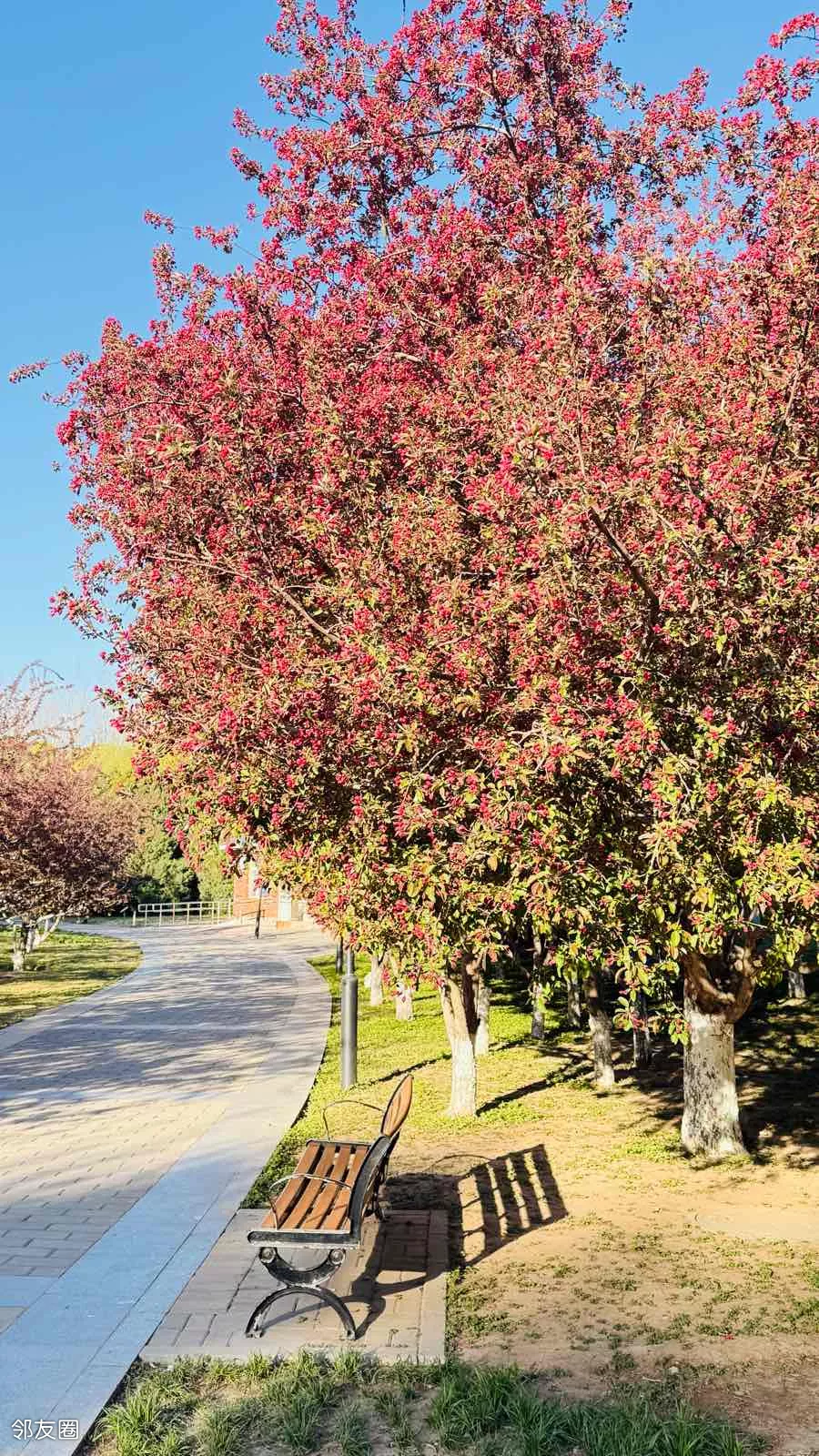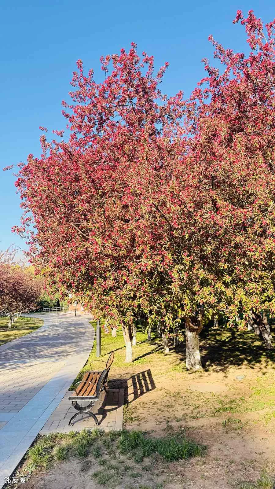 北小河公园网红打卡海棠树,开始挂红了,很快又到了满树繁花的日子,其实,海棠花比樱花更好看。