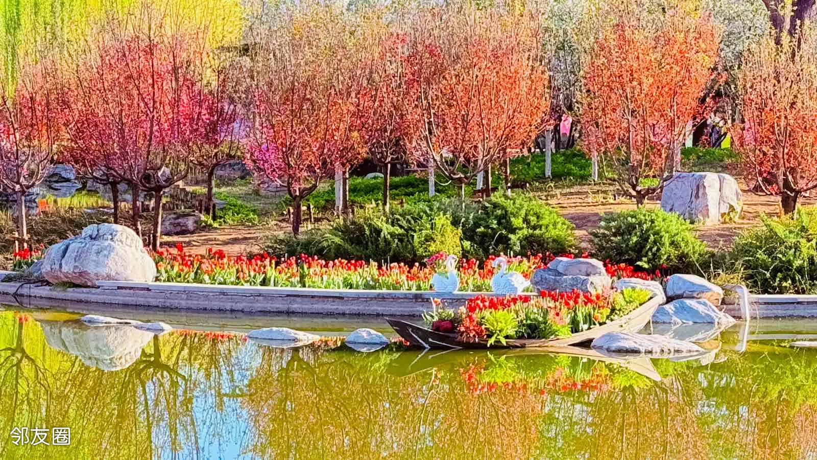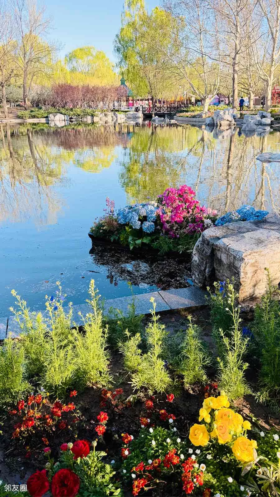 #醉美春天 望京社区的小公园各具特色,我尤喜欢北小河公园,因为这个公园有江南园林的美感,小桥流水,园林小品设计小巧别致,