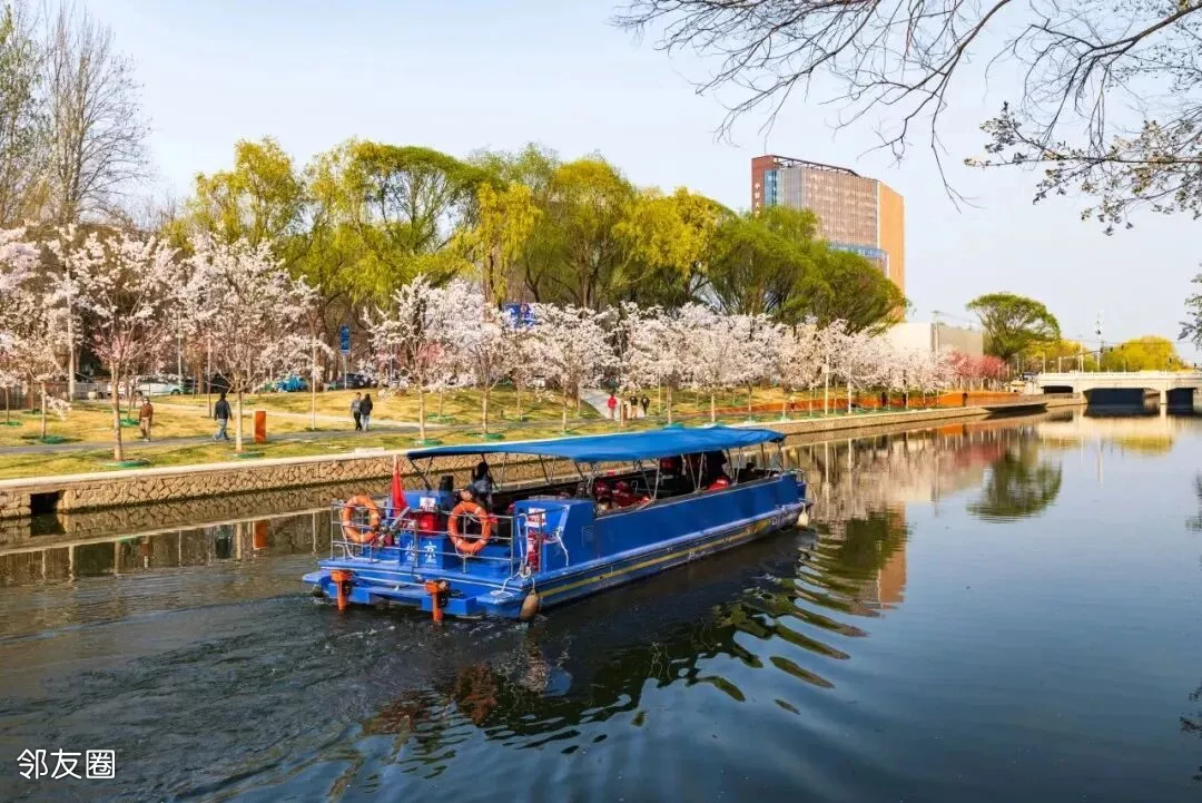 市民从北小河公园东门出发,沿滨水绿道一路东行,沿途可赏阳光樱、江户樱、飞寒樱等10余种樱花。其中早樱有垂枝樱、奖章樱等,中樱以思川樱为代表,晚樱则包含郁金樱、菊樱、关山樱等多个品种,花色从粉红、浅粉到绯红、粉白、浅黄绿次第变换,花期从3月下旬一直延续至4月底。