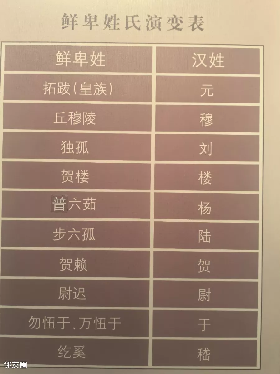 在唐山博物馆看到鲜卑姓氏向汉姓的演变