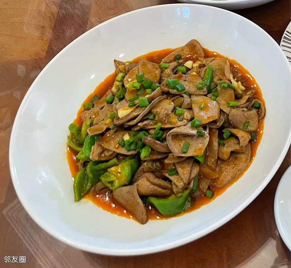 青椒爆炒猪肝成菜……