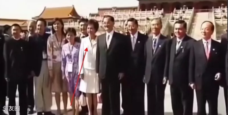 2005年,记录了郑丽文随同连战参观故宫的珍贵画面。(箭头所指为连战夫人)