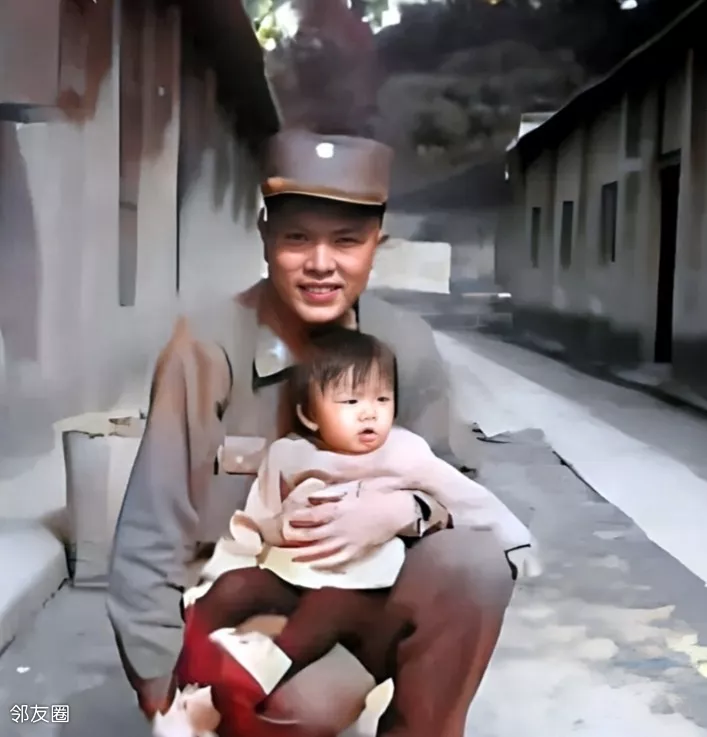 上世纪70年代初,台南眷村,童年时期的郑丽文与她的父亲郑清辉