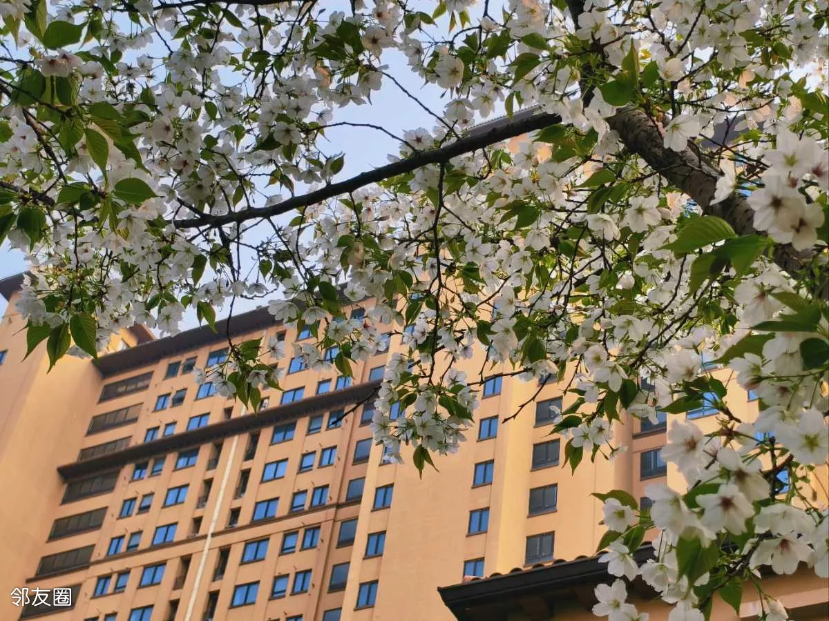 春日正好,小区里的海棠开得正盛,满树繁花,粉白相间,温柔又明媚,和这春日时光格外应景。