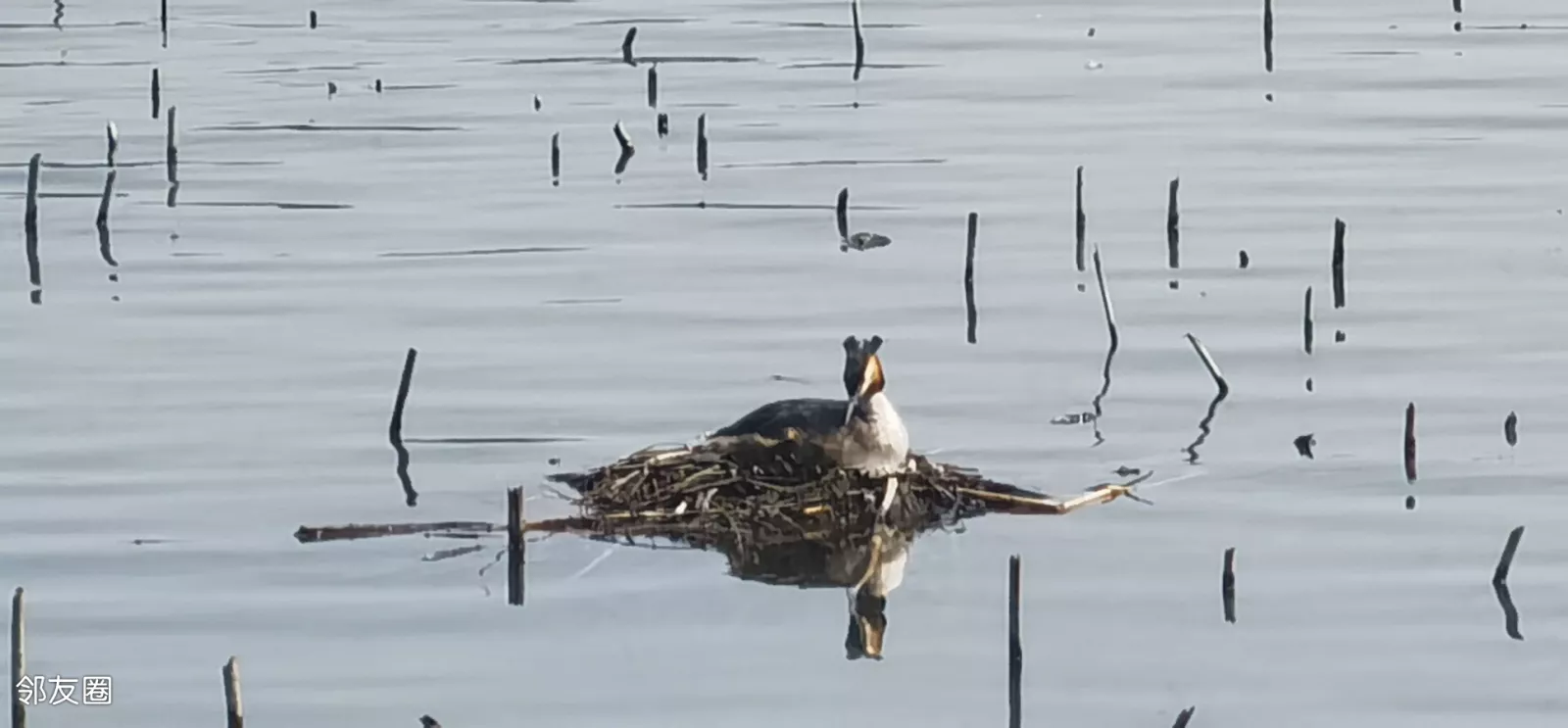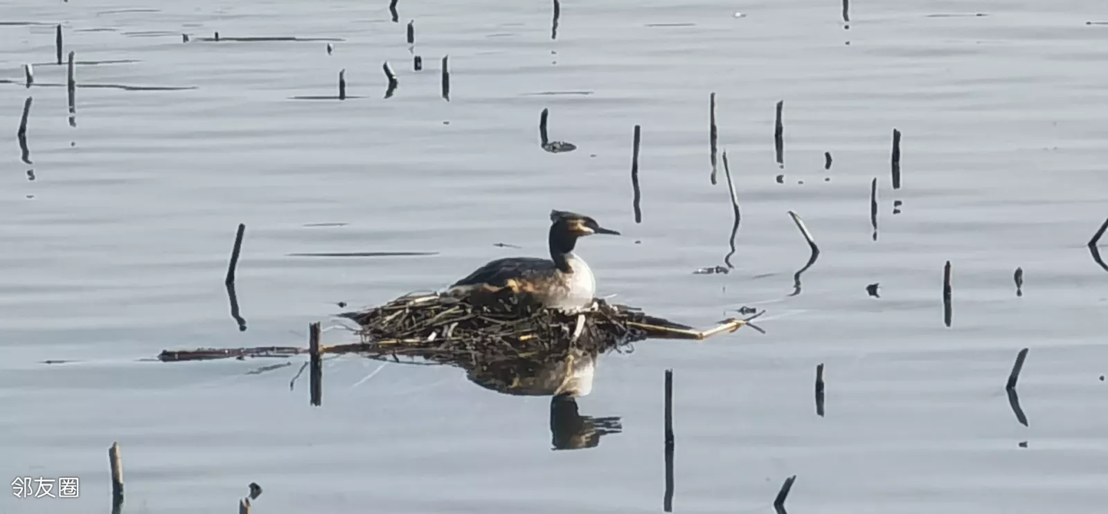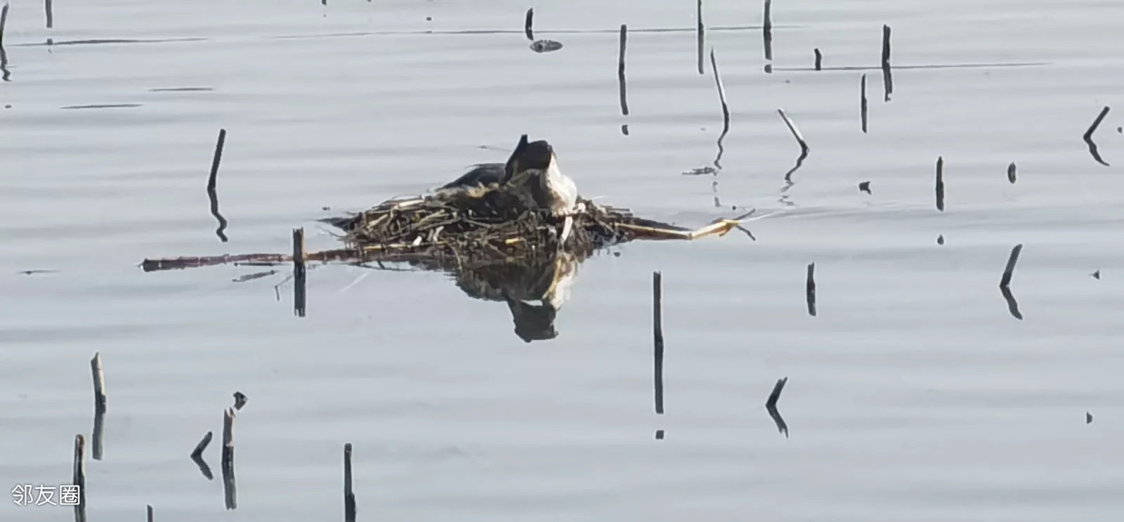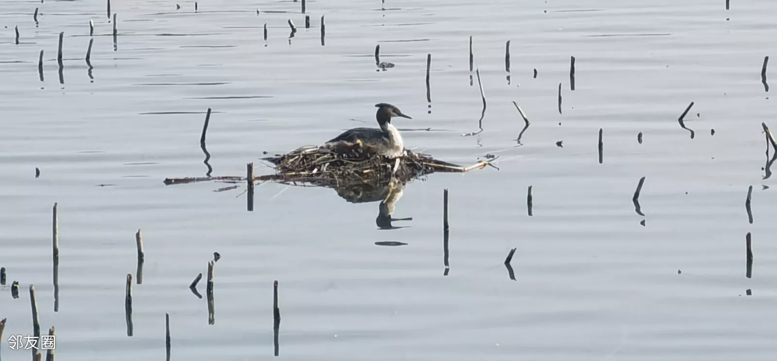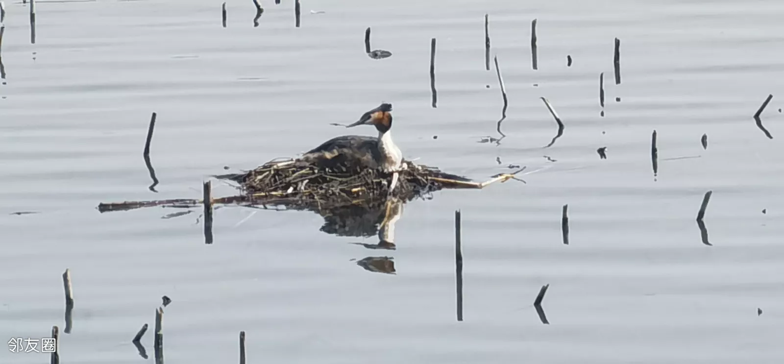 玉渊潭公园里的凤头䴙䴘正在坐月子
