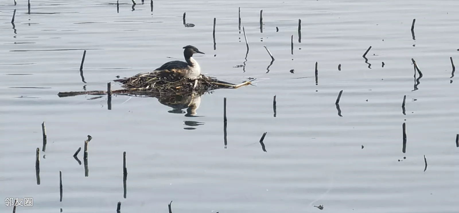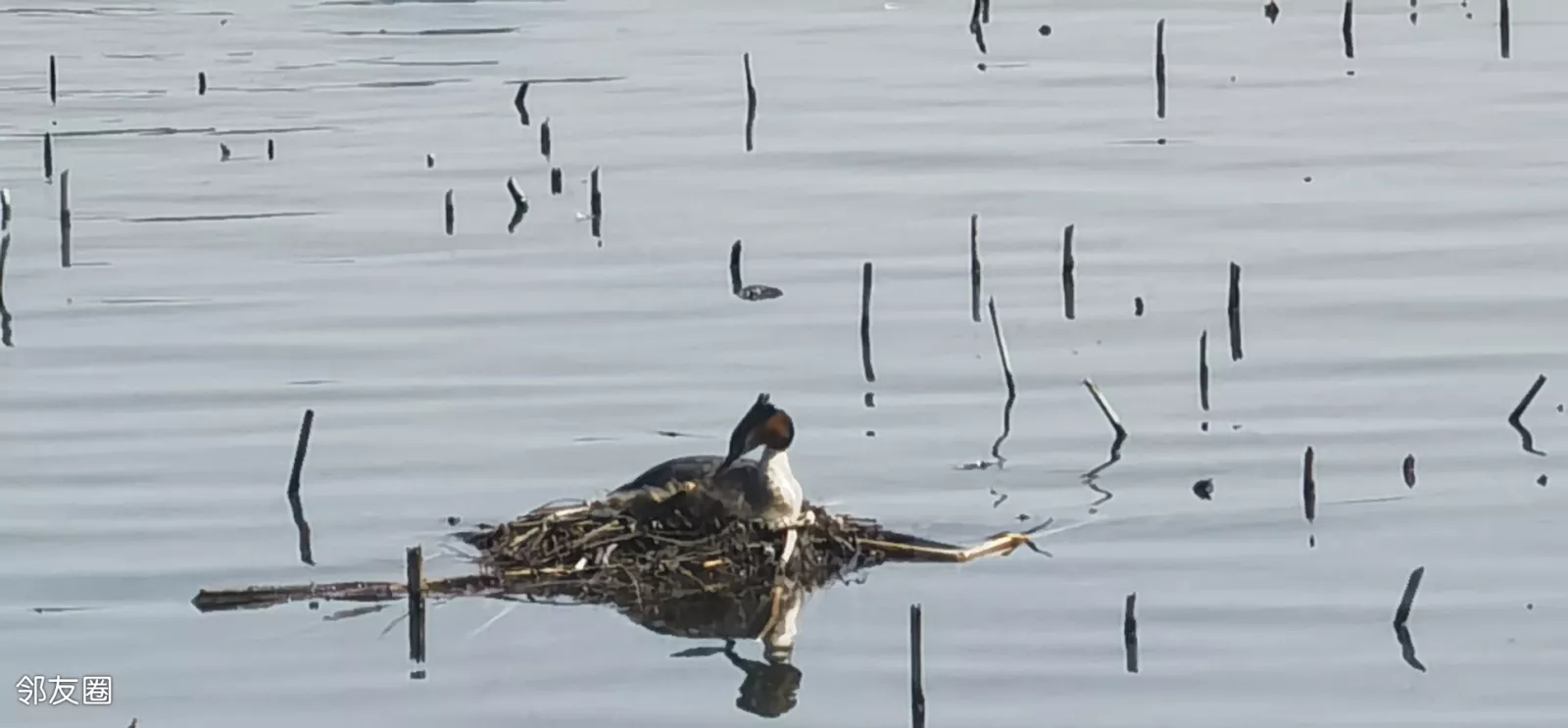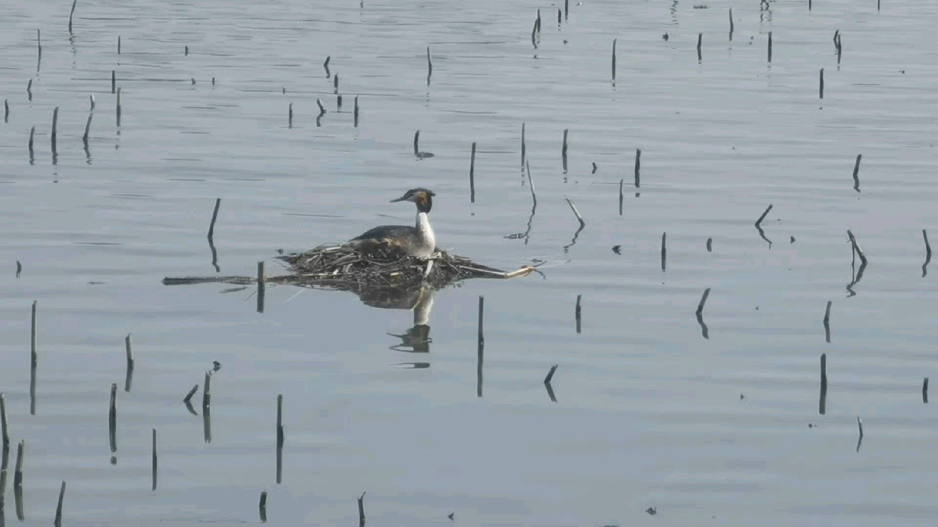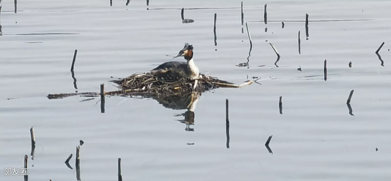玉渊潭公园里的凤头䴙䴘正在坐月子