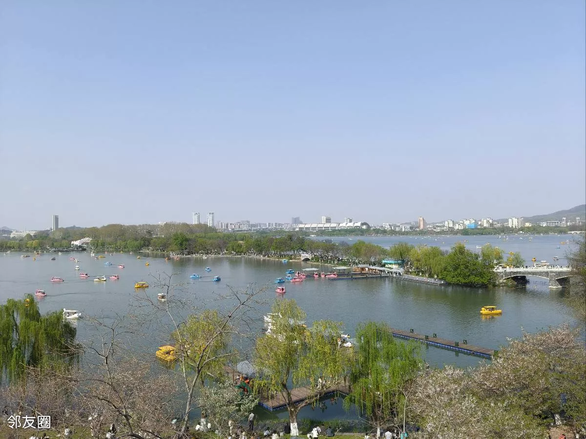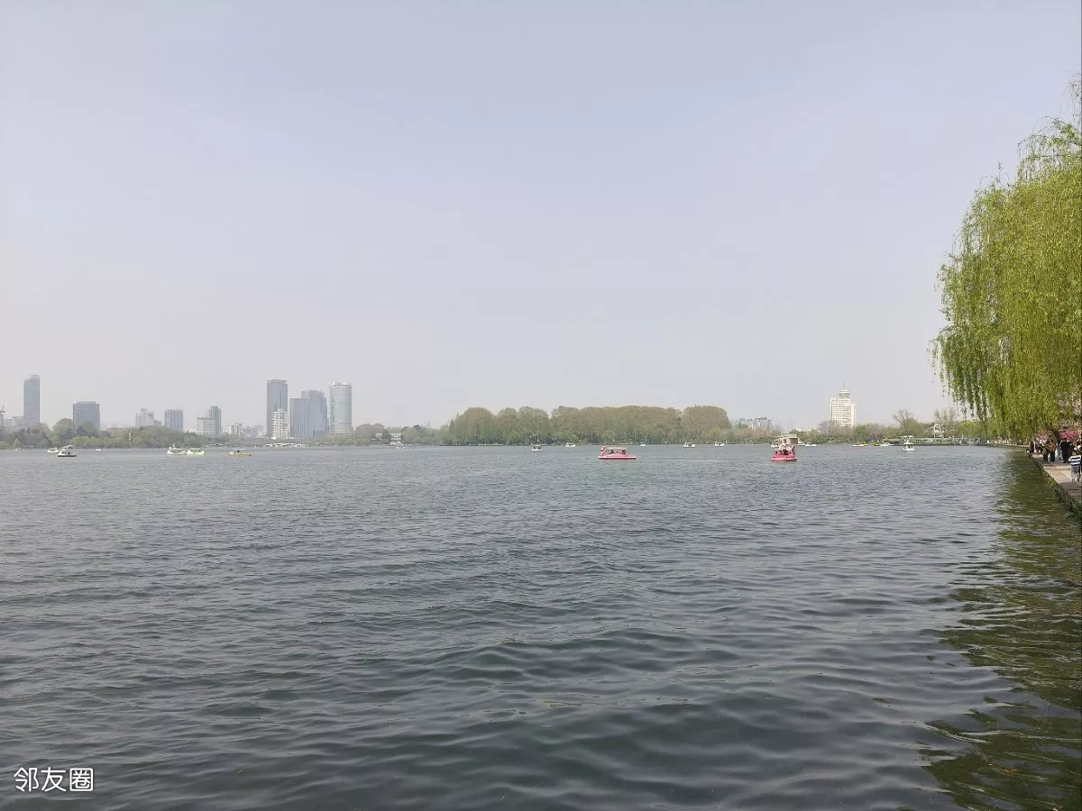 #第三届望京海棠花溪摄影大赛珍爱河道,美好家园!2026年4月8日,望京海棠花溪,工人在清理河道水面上的海棠花瓣及杂物,让花溪更清洁美好。刘宪国摄!(13120