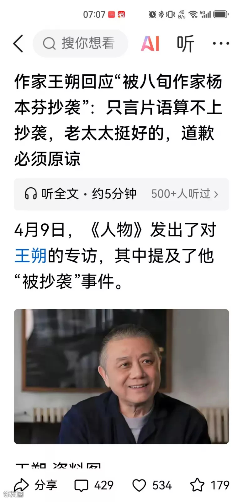 作家王朔回应“被八旬作家杨本芬抄袭”:只言片语算不上抄袭,老太太挺好的,道歉必须原谅