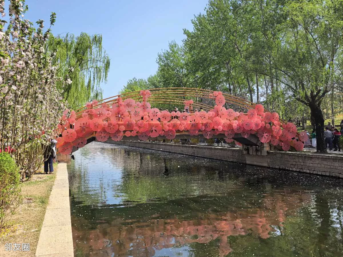 #第三届望京海棠花溪摄影大赛珍爱河道,美好家园!2026年4月8日,望京海棠花溪,工人在清理河道水面上的海棠花瓣及杂物,让花溪更清洁美好。刘宪国摄!(13120