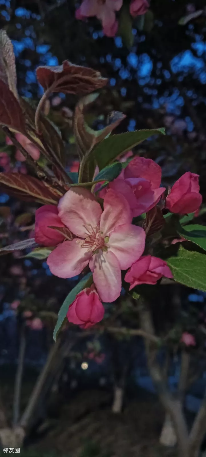 春日花溪入画来,灯火阑珊映海棠