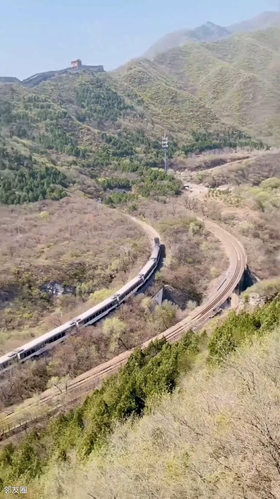 桃花虽然已经凋谢了,没看到桃花花海,也看到了开往春天的列车。
