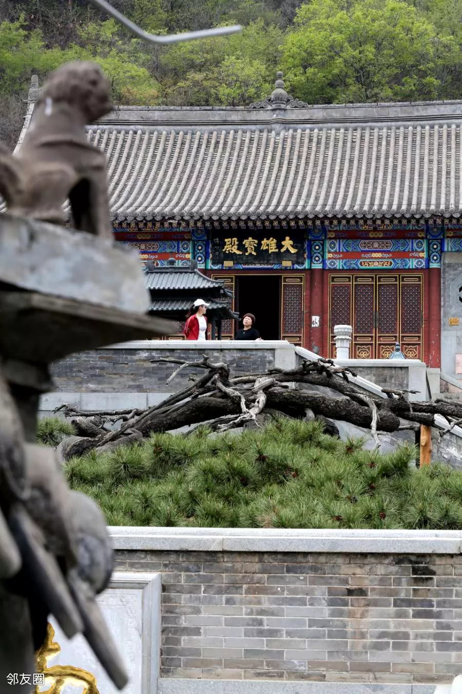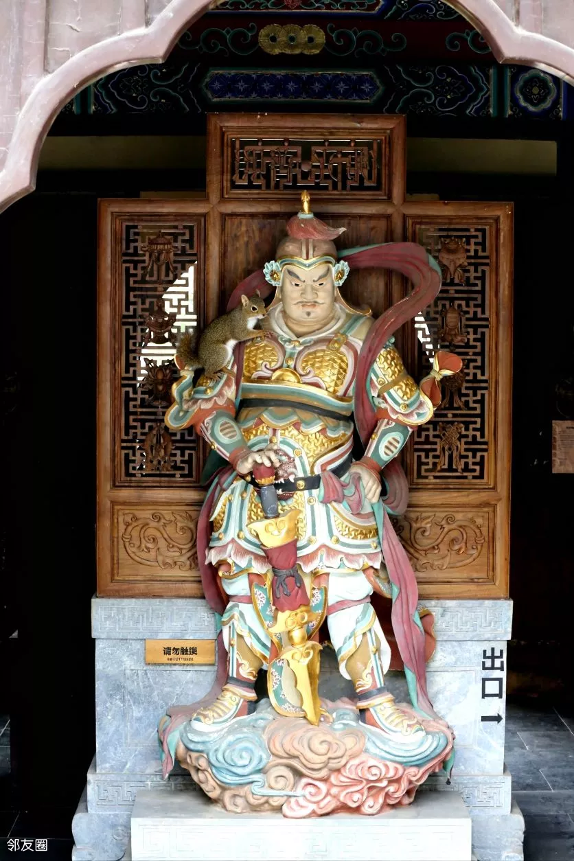 延寿寺及盘龙松。有只松鼠居然爬到韦陀的肩膀上