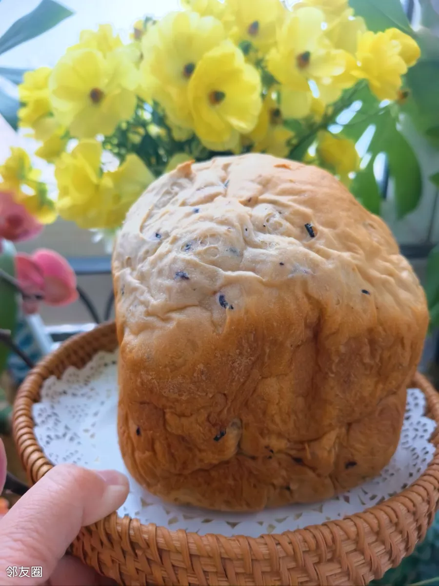 七鲜这大包装的蓝莓没吃完,放的有点蔫,为了快速处理了又不浪费,想起还有一袋面包粉,果断扔面包机里做了久未出场的蓝莓🫐面包,又加了牛奶、鸡蛋、盐、糖、酵母,标准面包模式,没耽误做饭,发起来超级成功。明天早餐有着落了,蓝莓也消灭干净了,一举两得。