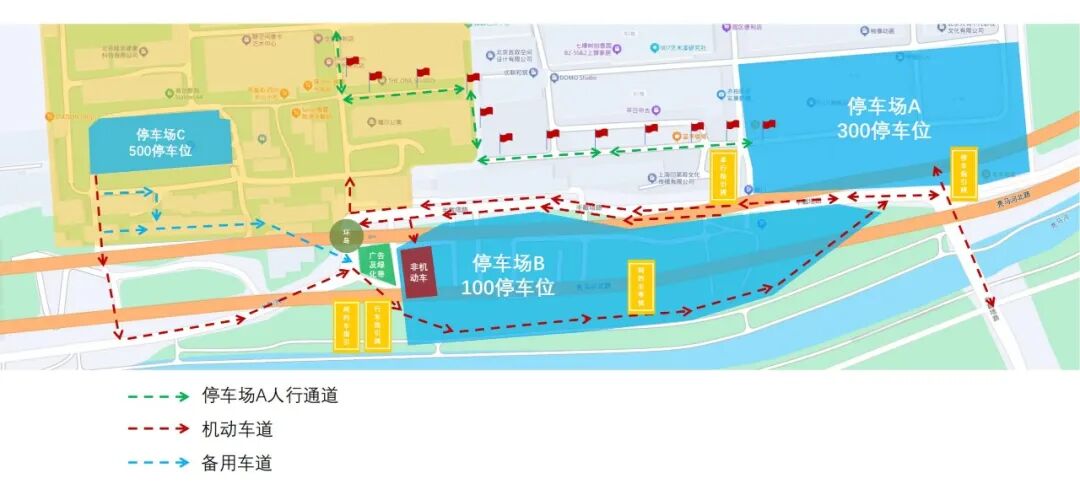为全力保障影迷出行,破解活动期间“停车难”问题,东坝地区全面统筹资源,深挖周边停车潜力,协调北京市公联公路联络线有限责任公司、郎园Station、七棵树创意园,共计开放1100个停车位,具体分布如下: